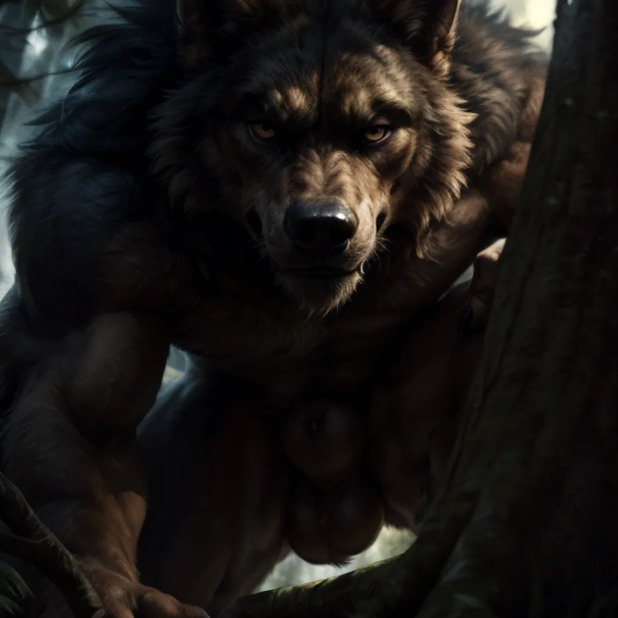 Wolf Werecanid Muscular Anthro Solo Crouching Intense Gaze Imminent Ra | Yiff Party