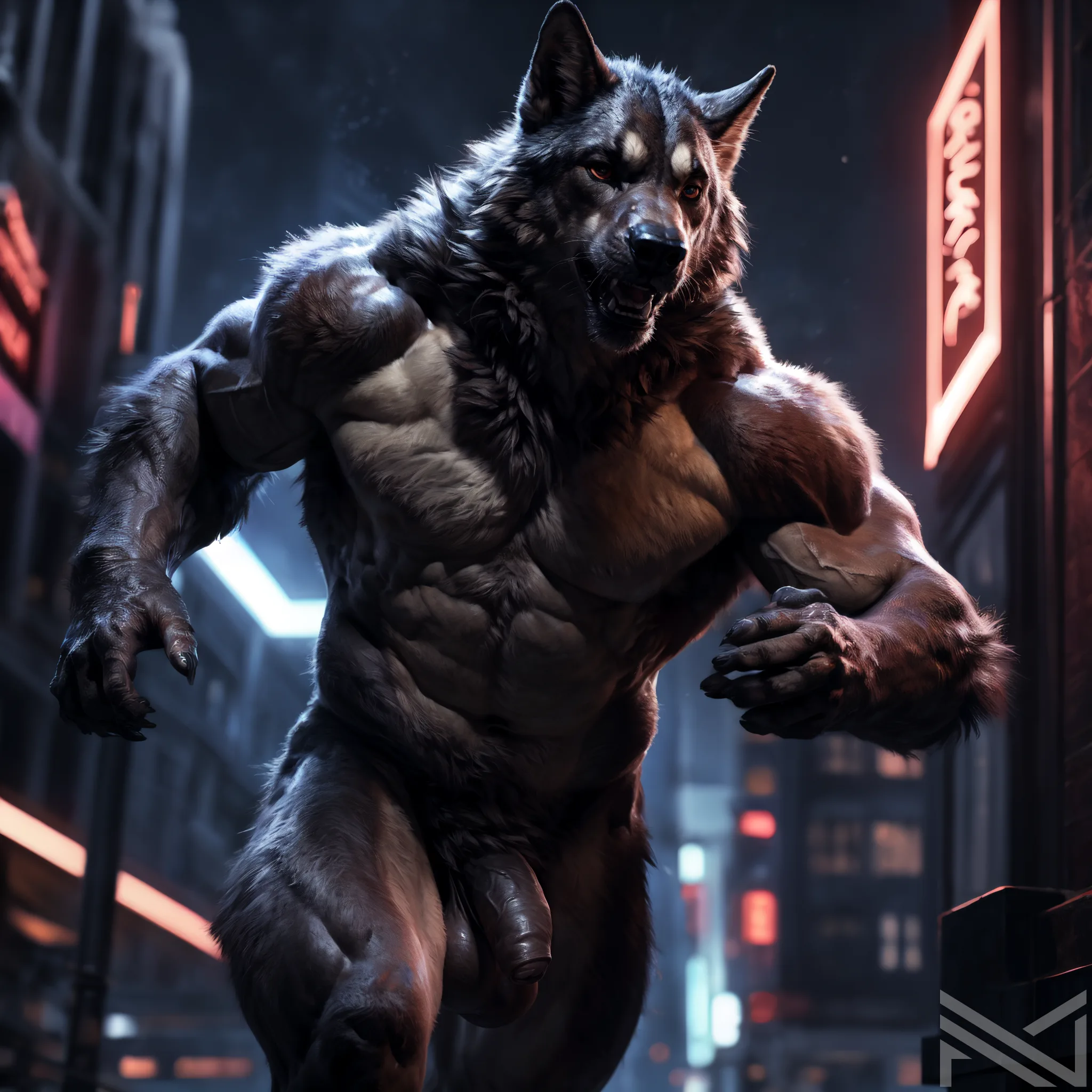 Wolfguy Jogging Nude Under Neon Lights With Massive Flaccid Foreskin | Yiff Party