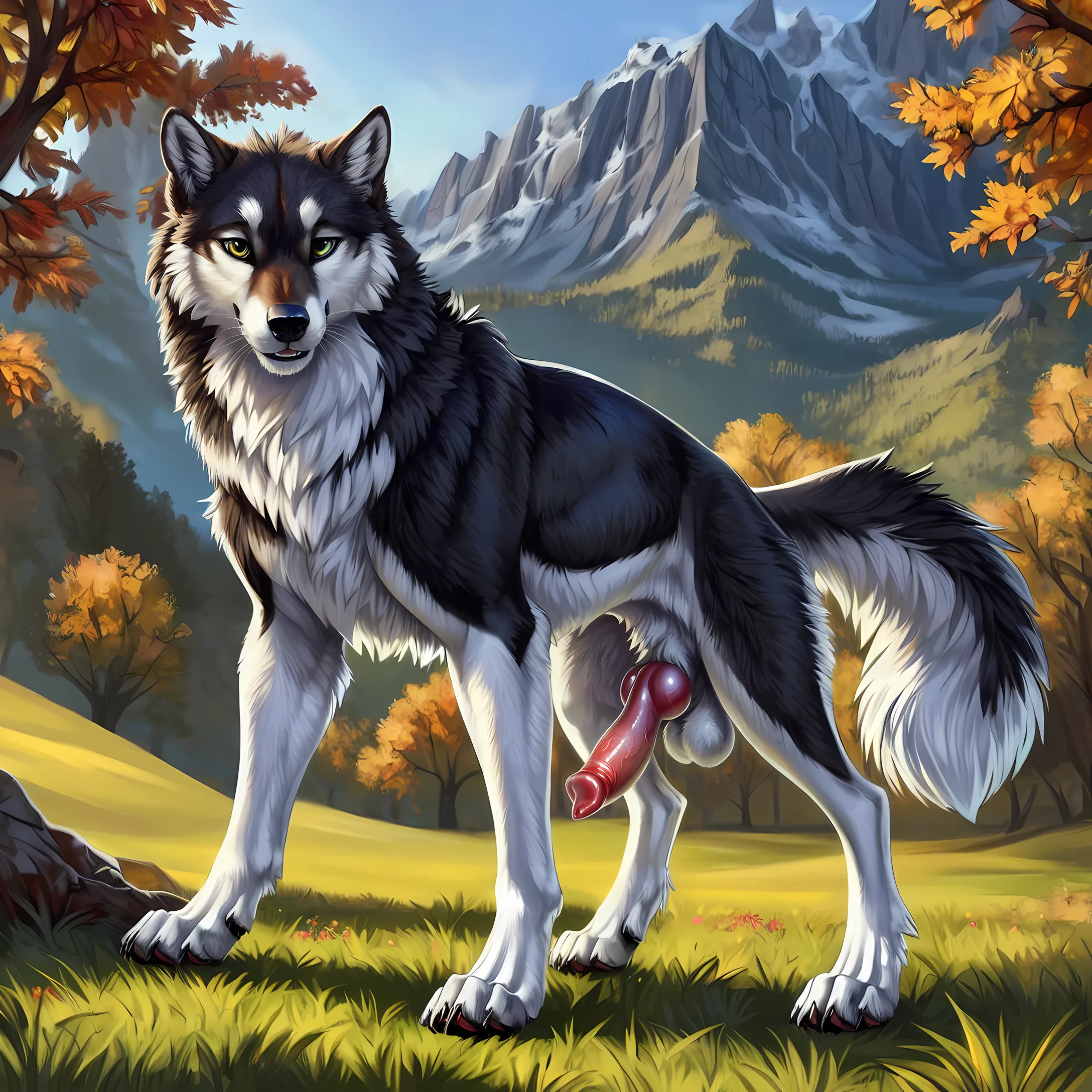 Wolftaur Furryrock Exposes Erect Knot And Balls On Grassy Mountain Slo | Yiff Party