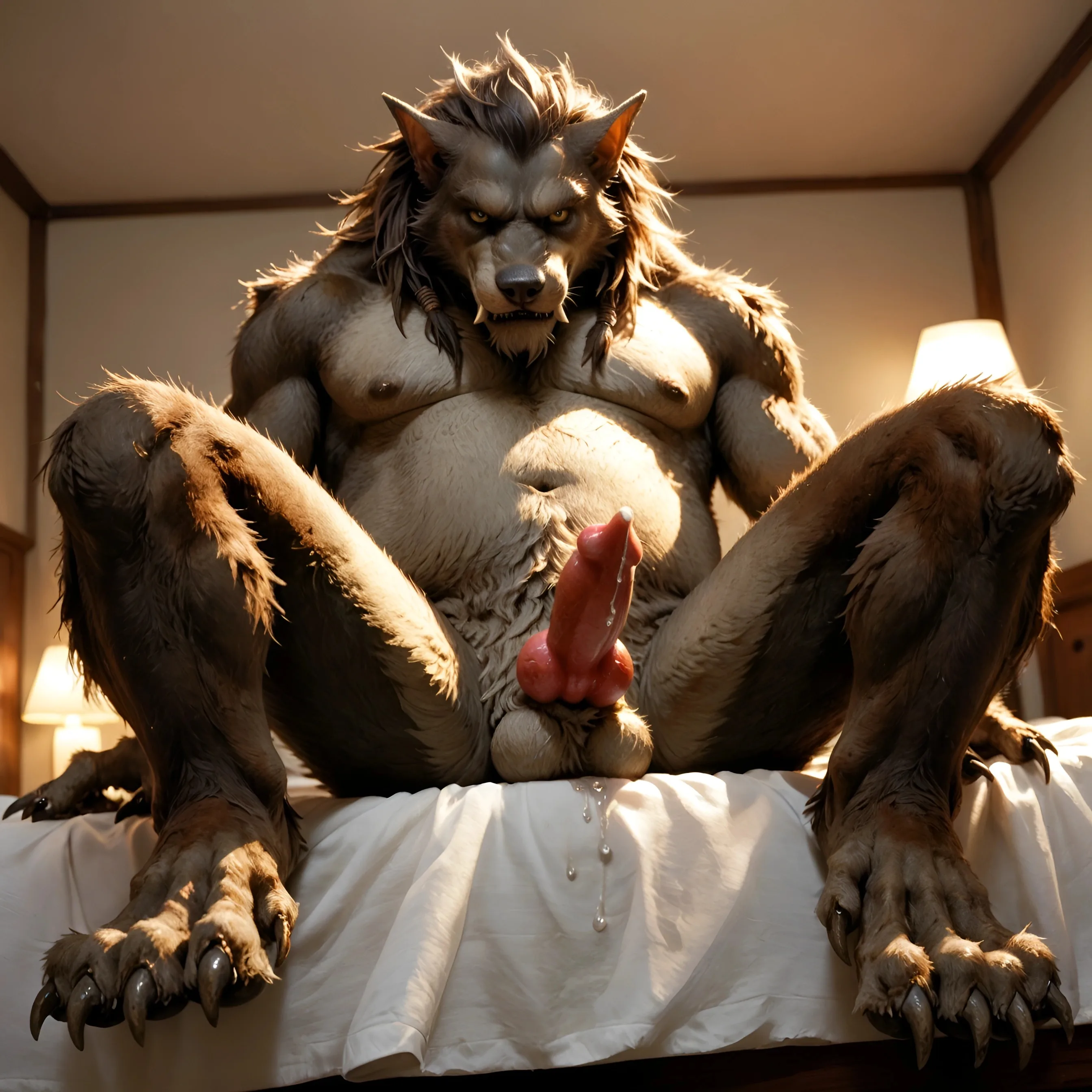 Worgen Anthro Male Big Penis And Balls Spread Legs On Bed | Yiff Party