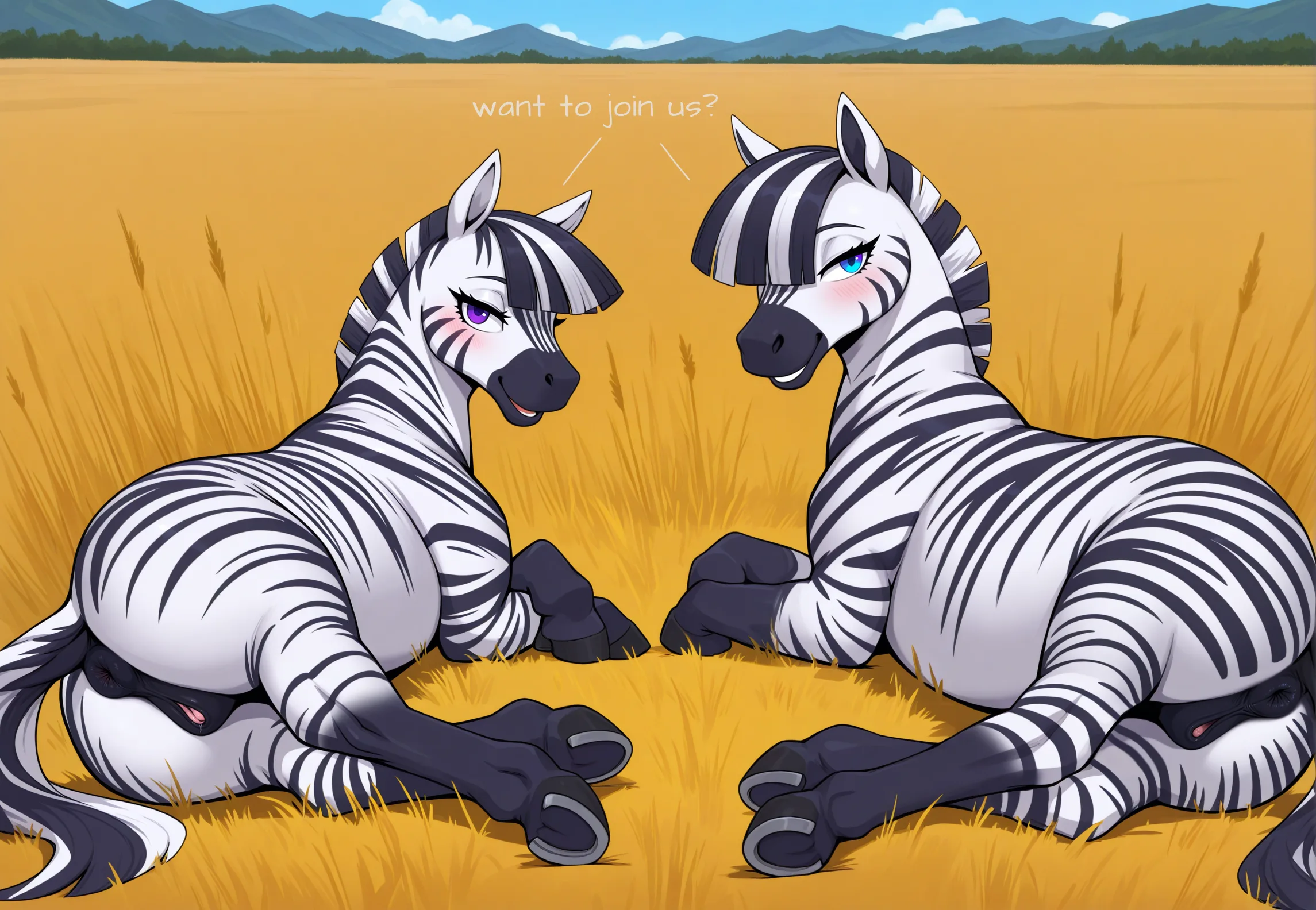 Zebra Duo Lying Side By Side In Savanna Presenting Equine Genitalia An | Yiff Party