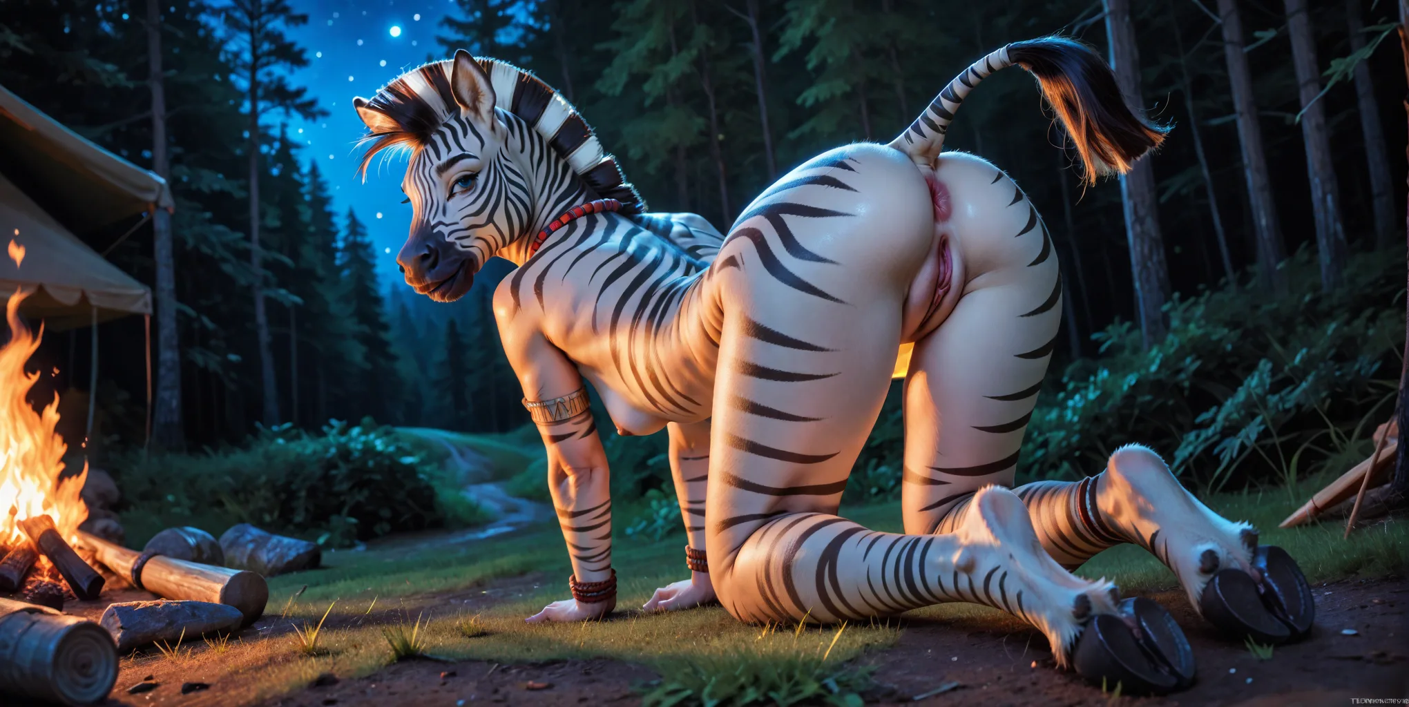Zebra Equine Presenting Pussy On All Fours By Campfire | Yiff Party