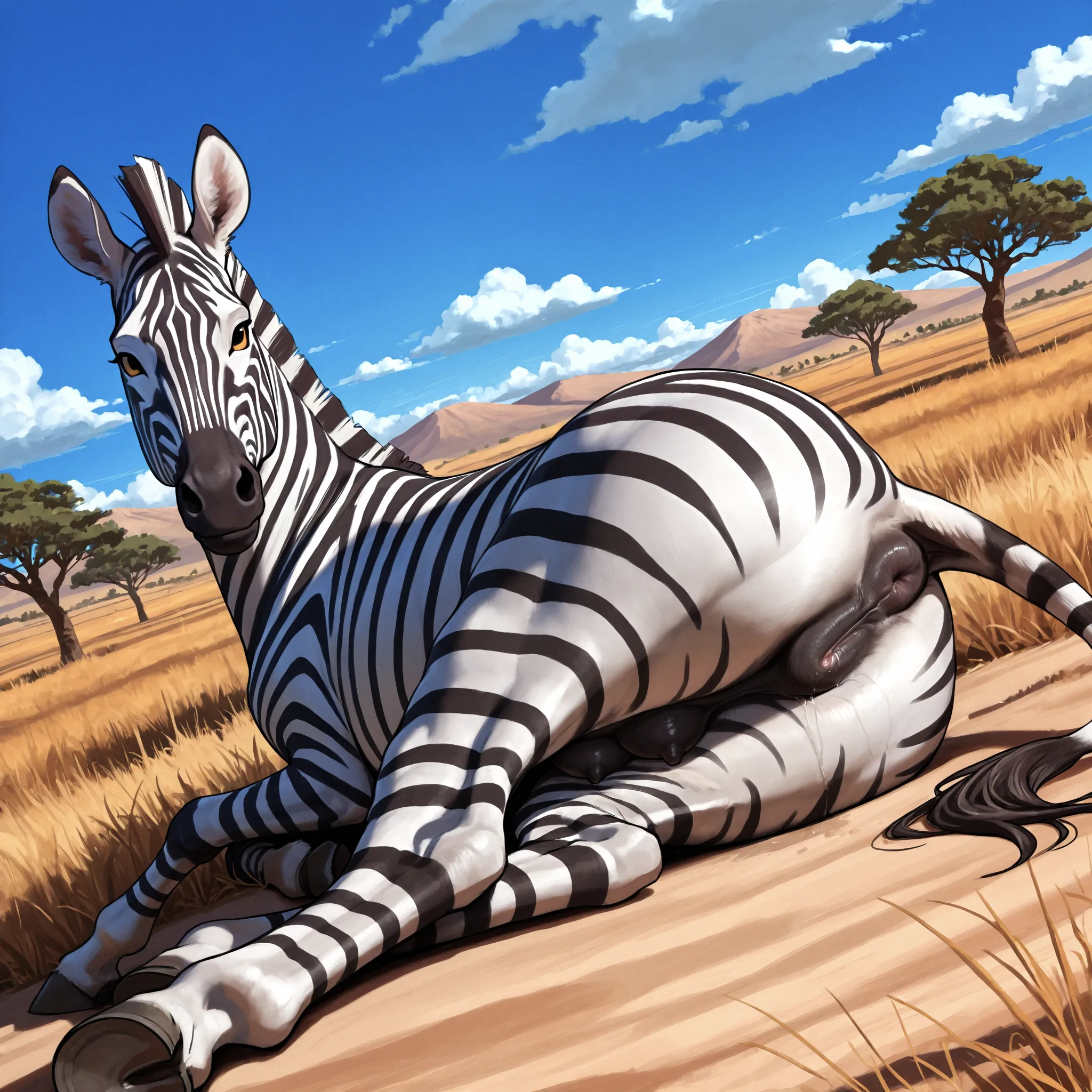 Zebra Mare Exposing Pussy Fluids Thick Thighs Lying On Side | Yiff Party
