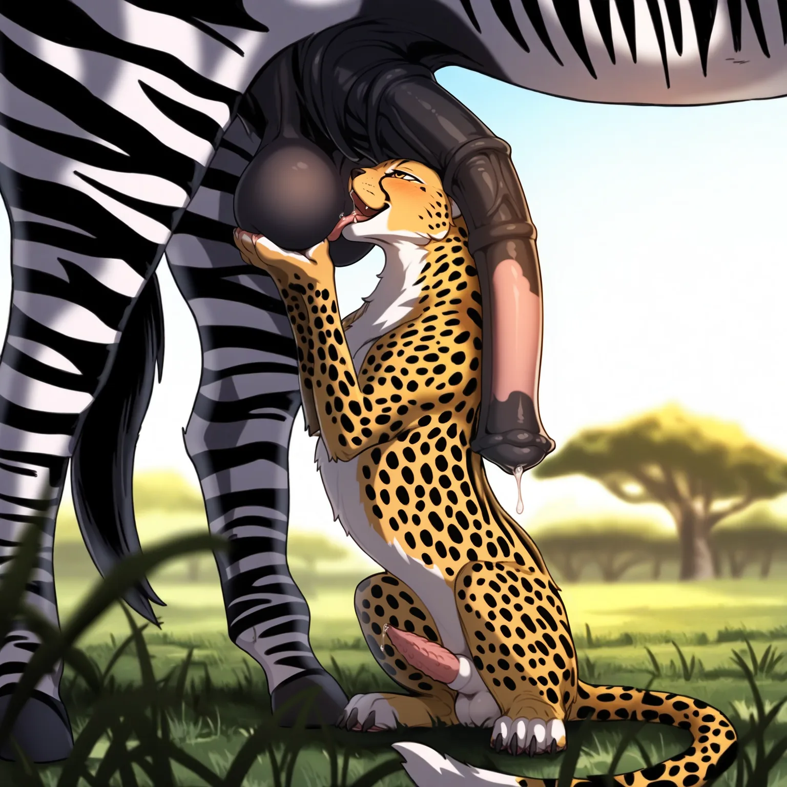 Zebra Tenderly Licks Cheetah'S Spiny Equine Cock In Savanna | Yiff Party