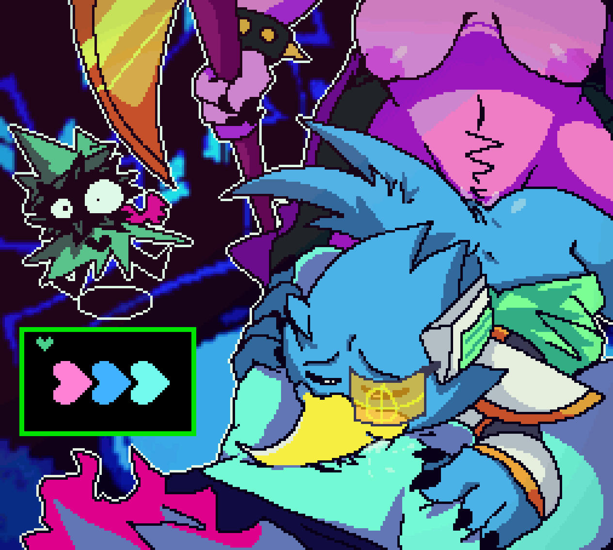 berdly, kris dreemurr, ralsei (deltarune, undertale (series)) created by salamikii