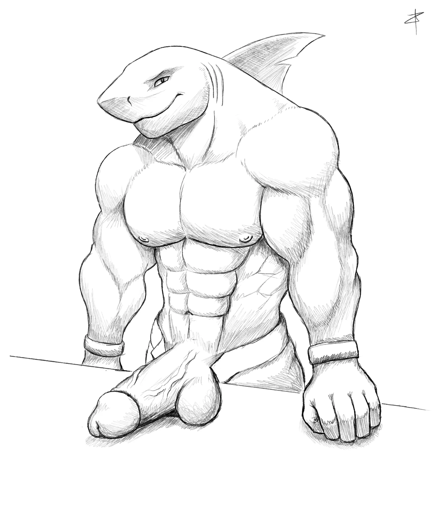 5 fingers, abs, anthro, balls