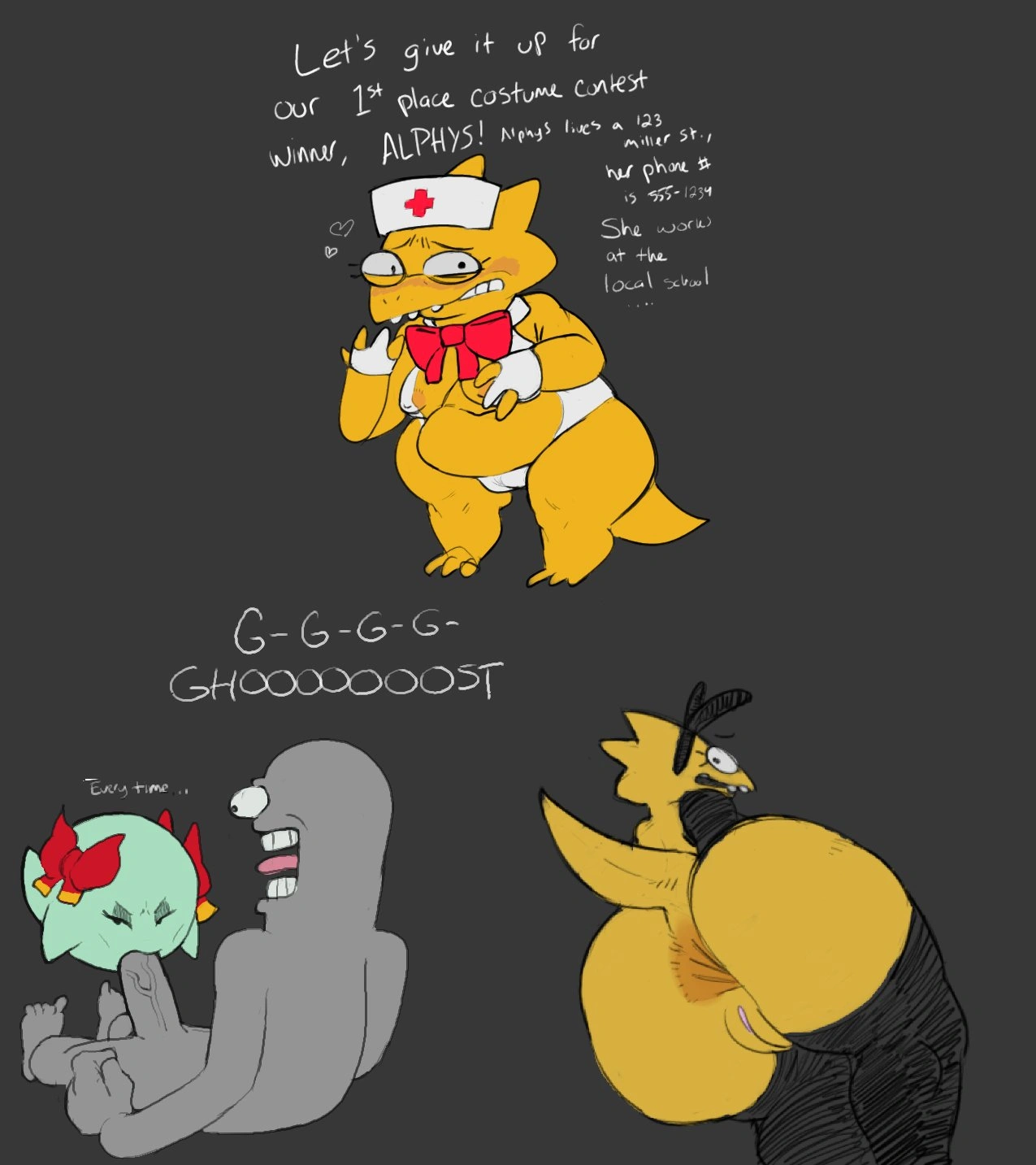 Alphys, Lady Bow (Mario Bros, Nintendo) Created By Garbledina | Yiff Party