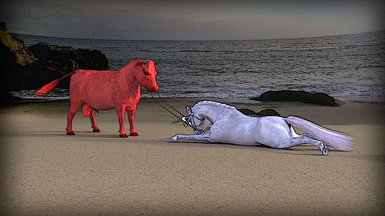 amalthea (tlu), red bull (tlu) (mythology, the last unicorn) created by sunjaguar