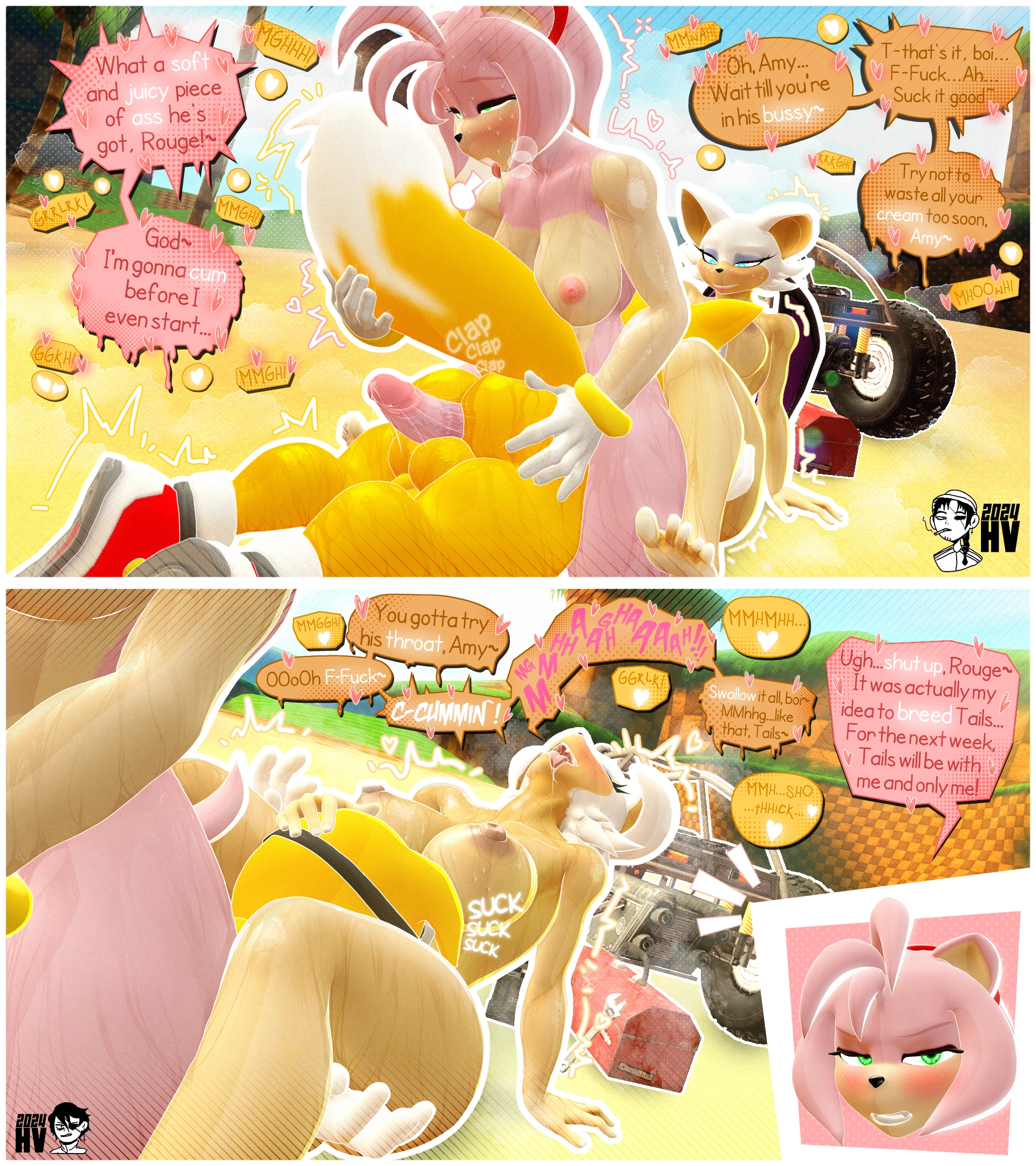 amy rose, miles prower, rouge the bat (sega, sonic the hedgehog (series)) created by highv0ltage