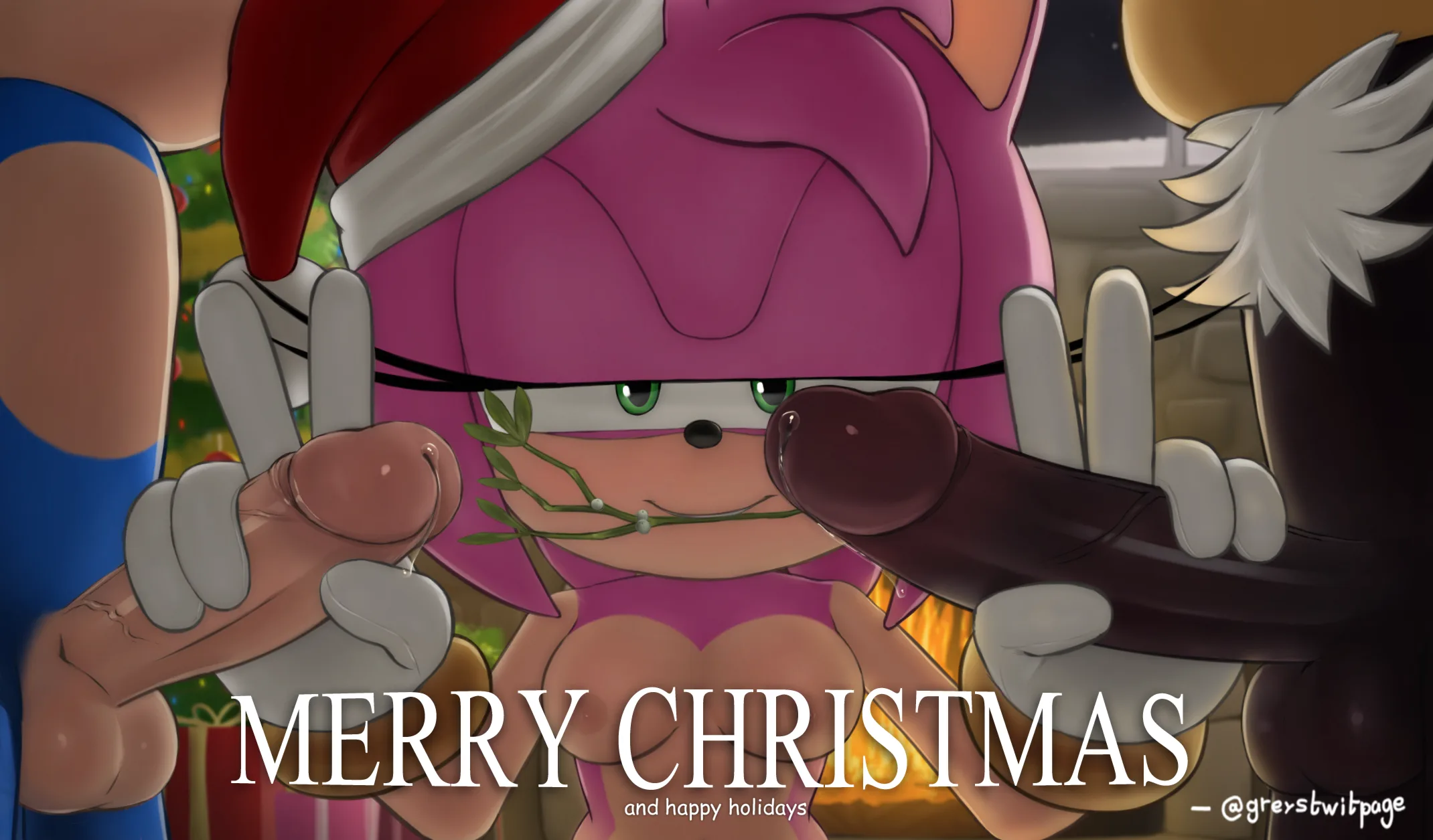 amy rose, shadow the hedgehog, sonic the hedgehog (christmas, sega) created by greystwitpage (artist)