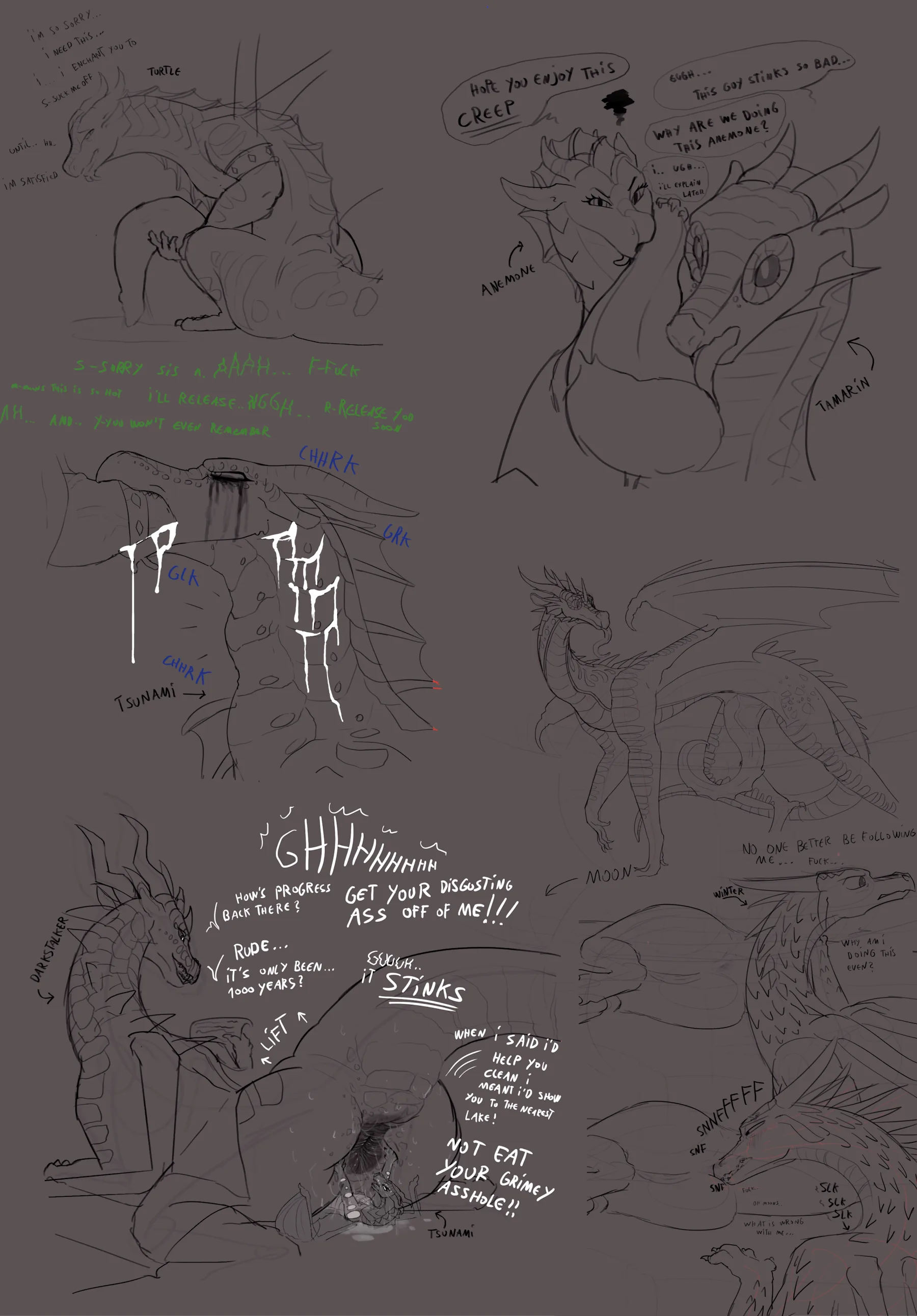 Anemone (Wof), Darkstalker (Wof), Moonwatcher (Wof) (Mythology, Wings Of Fire) Created By Creativeclaws | Yiff Party