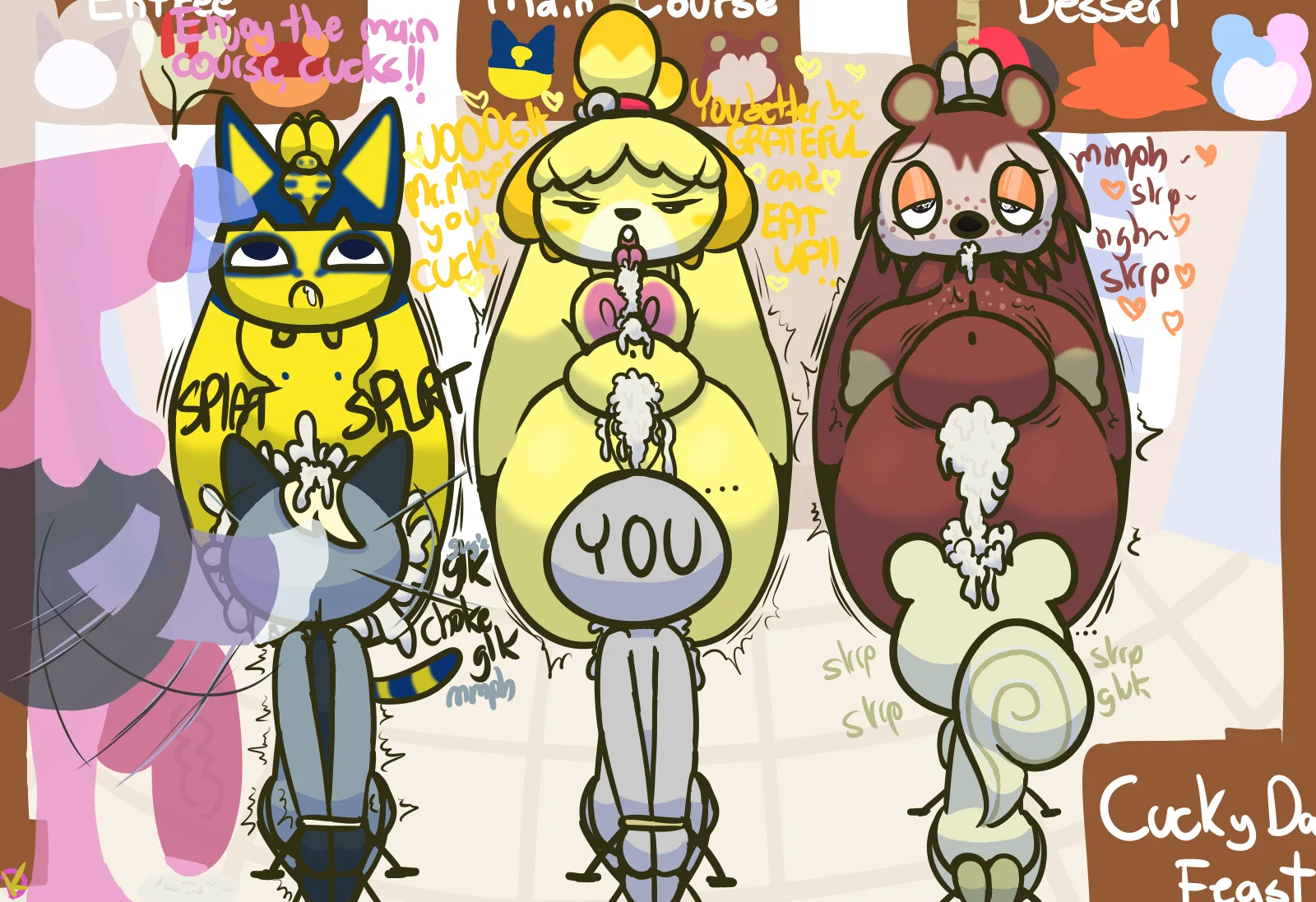 Ankha (Animal Crossing), Anon, Franklin (Animal Crossing) (Animal Crossing, Nintendo) Created By Klutzatdusk | Yiff Party