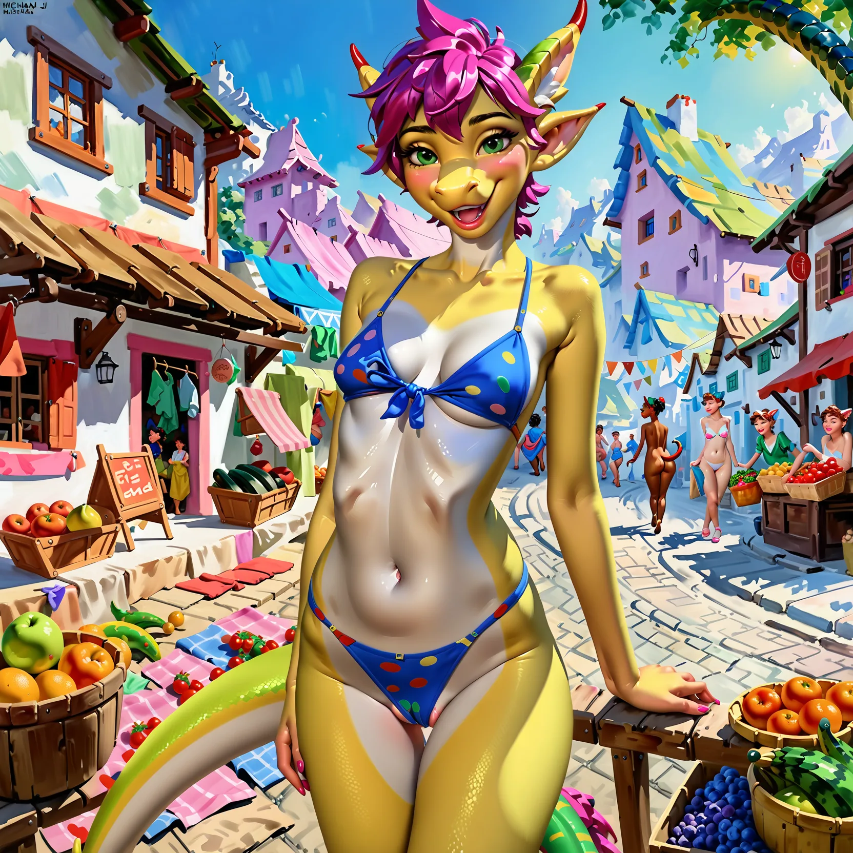 anthro, bikini, blush, breasts