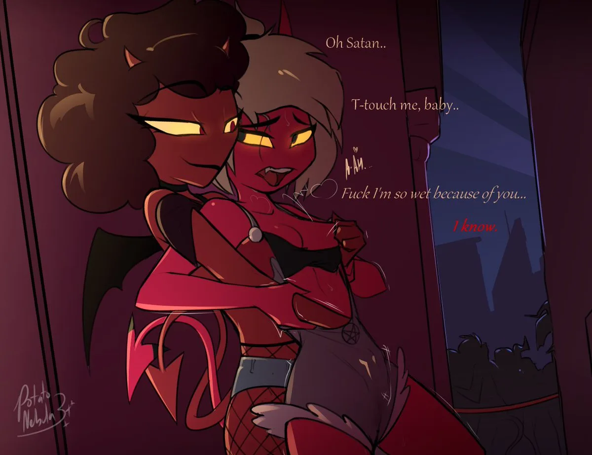 apple (helluva boss), coco (helluva boss) (hellaverse, helluva boss) created by potatonebula