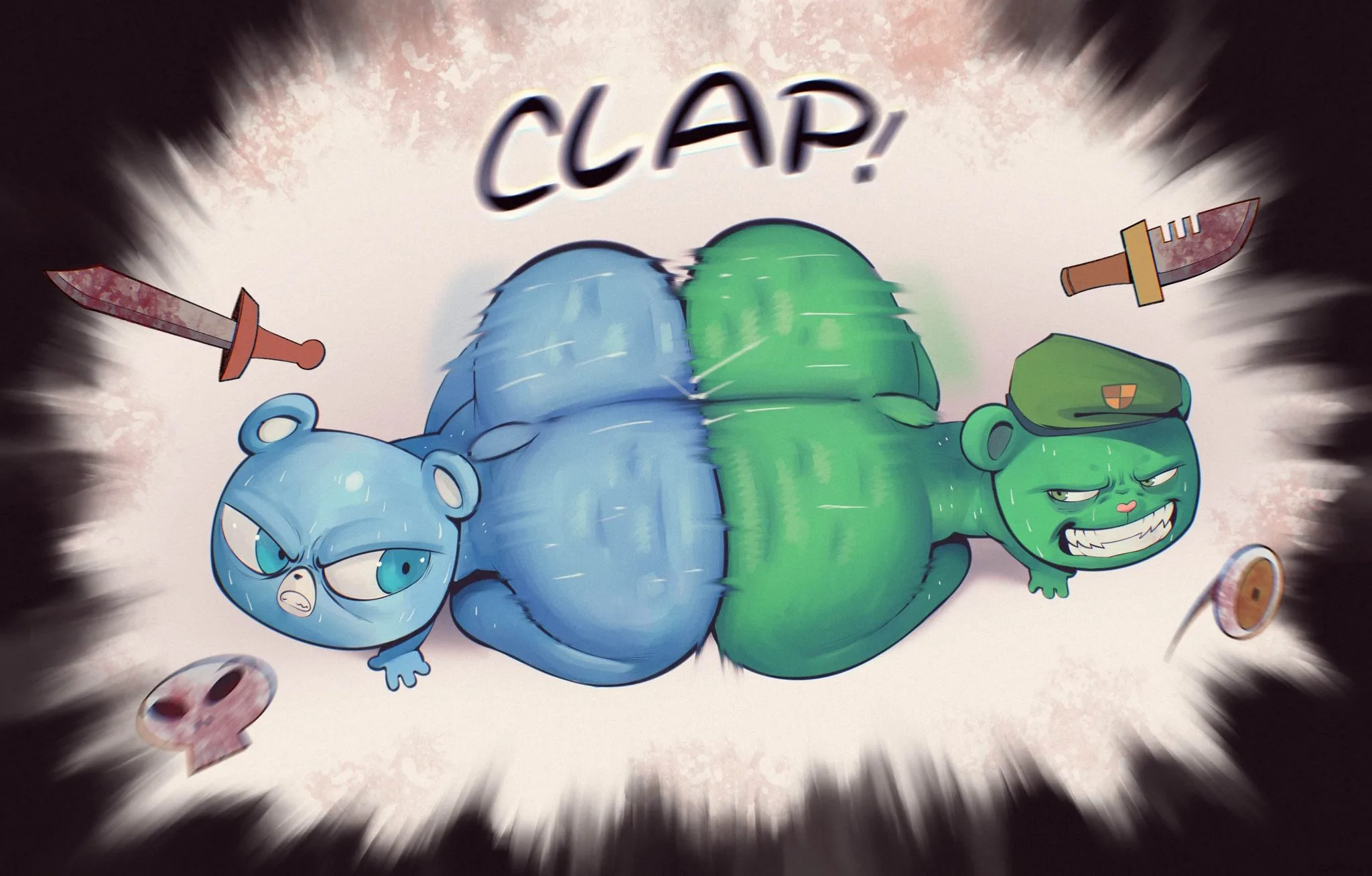azulin (unicorn wars), fliqpy (htf) (happy tree friends, unicorn wars) created by sqoon