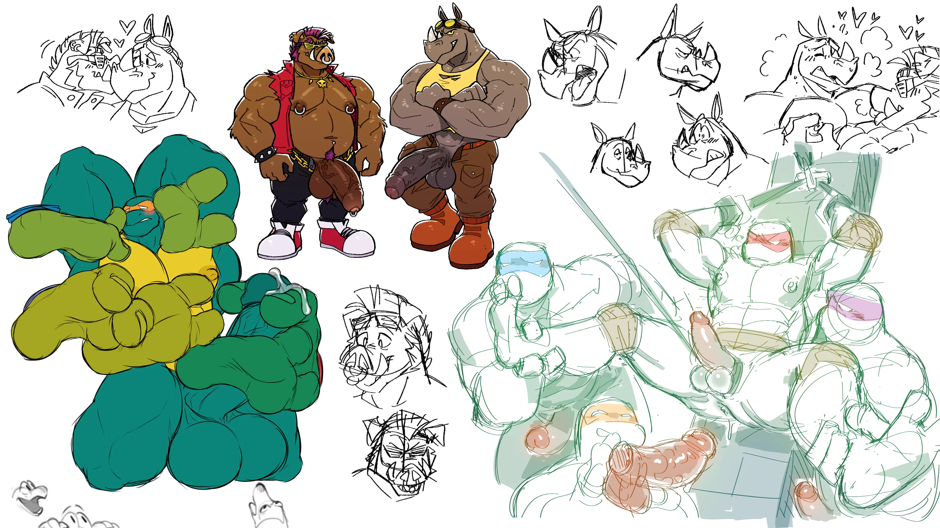bebop, donatello (tmnt), leonardo (tmnt) (teenage mutant ninja turtles) created by bayron (artist), poppin