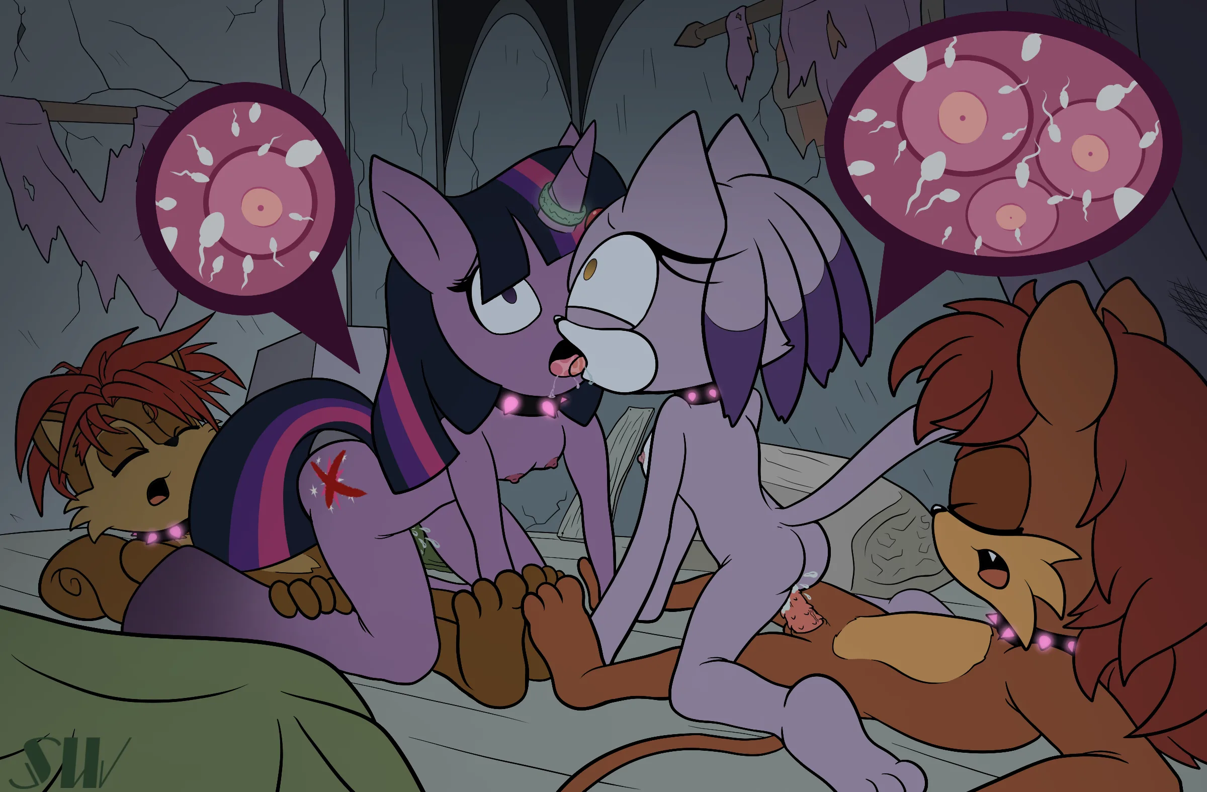blaze the cat, elias acorn, klaue the lion (archie comics, friendship is magic) created by shadowwalk
