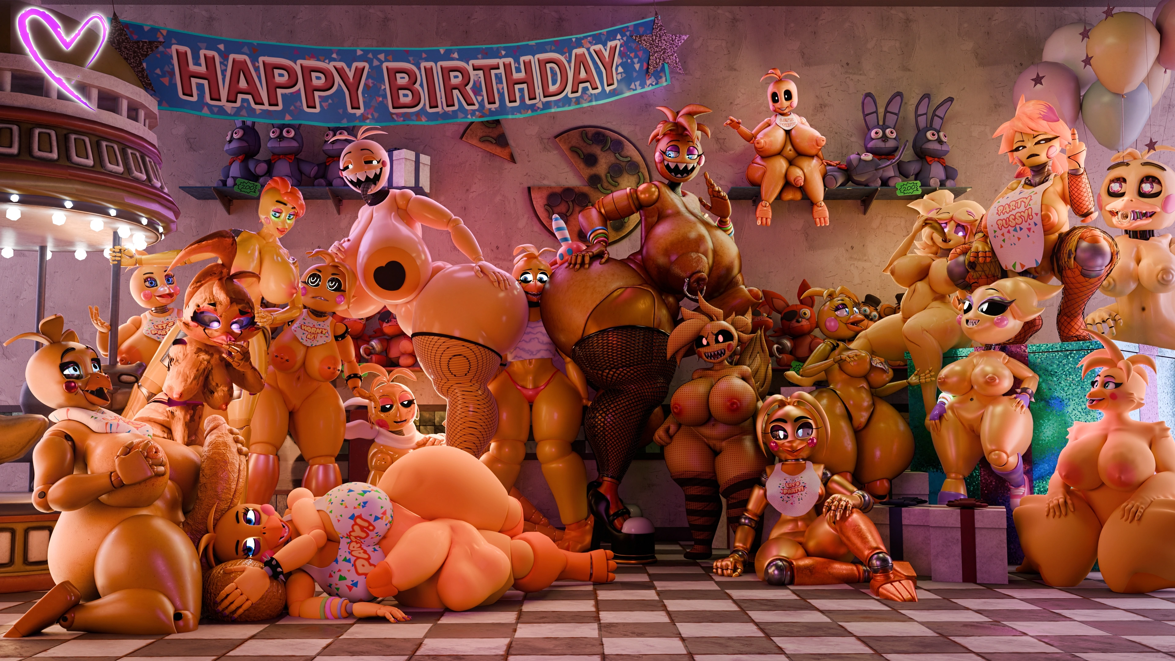 Bonnie (Fnaf), Chica (Fnaf), Chiku (Cryptiacurves) (Five Nights At Freddy'S, Five Nights At Freddy'S 2) Created By Anonymousfm | Yiff Party