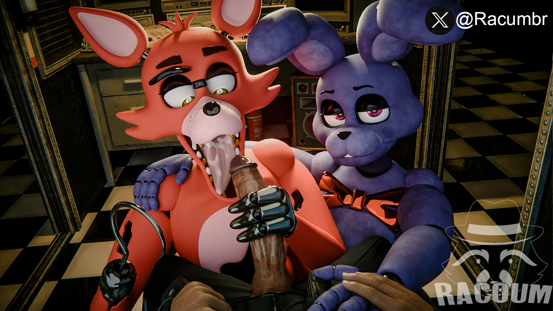 bonnie (fnaf), foxy (fnaf) (five nights at freddy's, scottgames) created by racoum