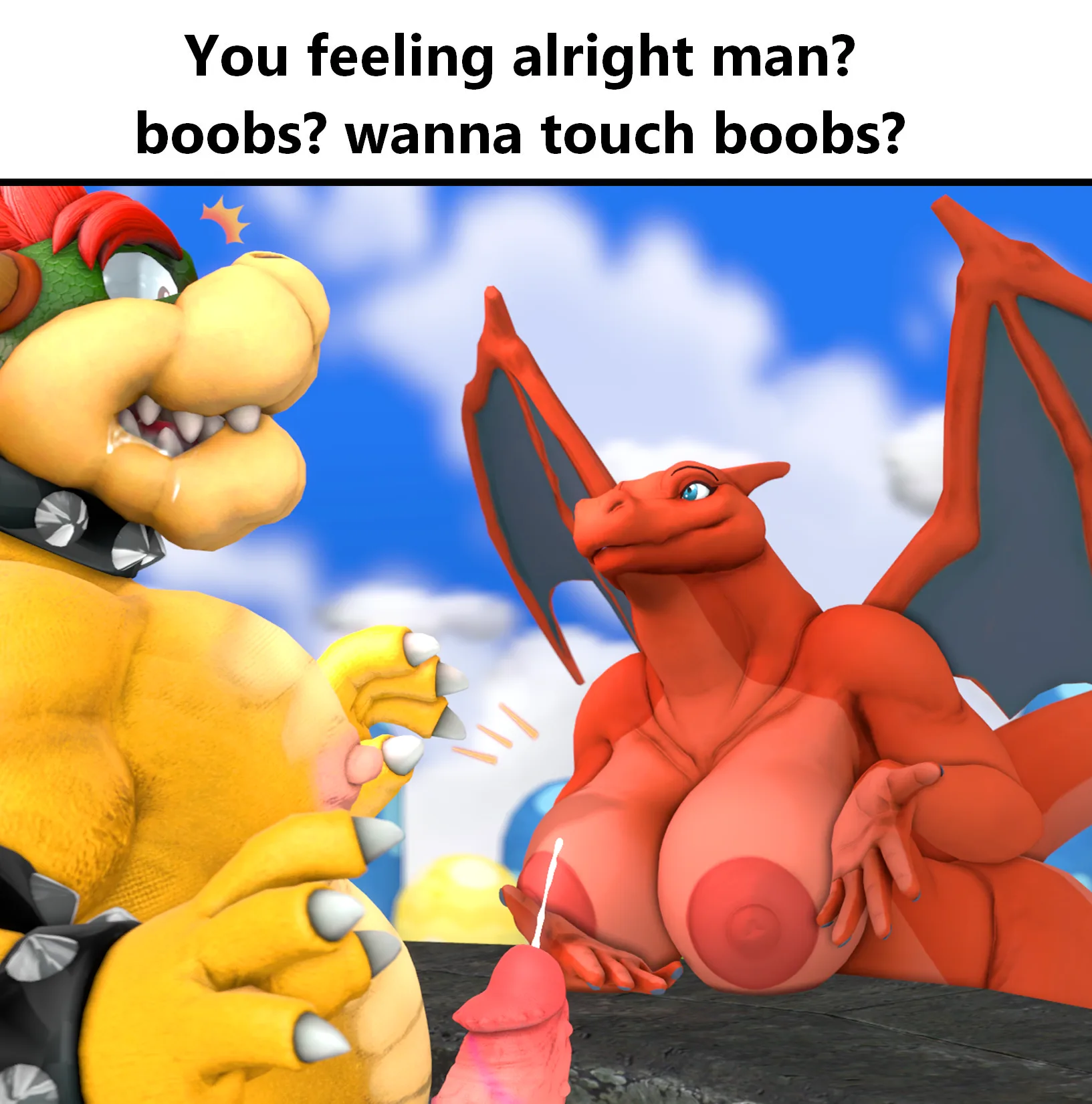 Bowser, Zardmom (Reptilligator) (Boobs? Wanna Touch Boobs?, Mario Bros) Created By Tigura | Yiff Party