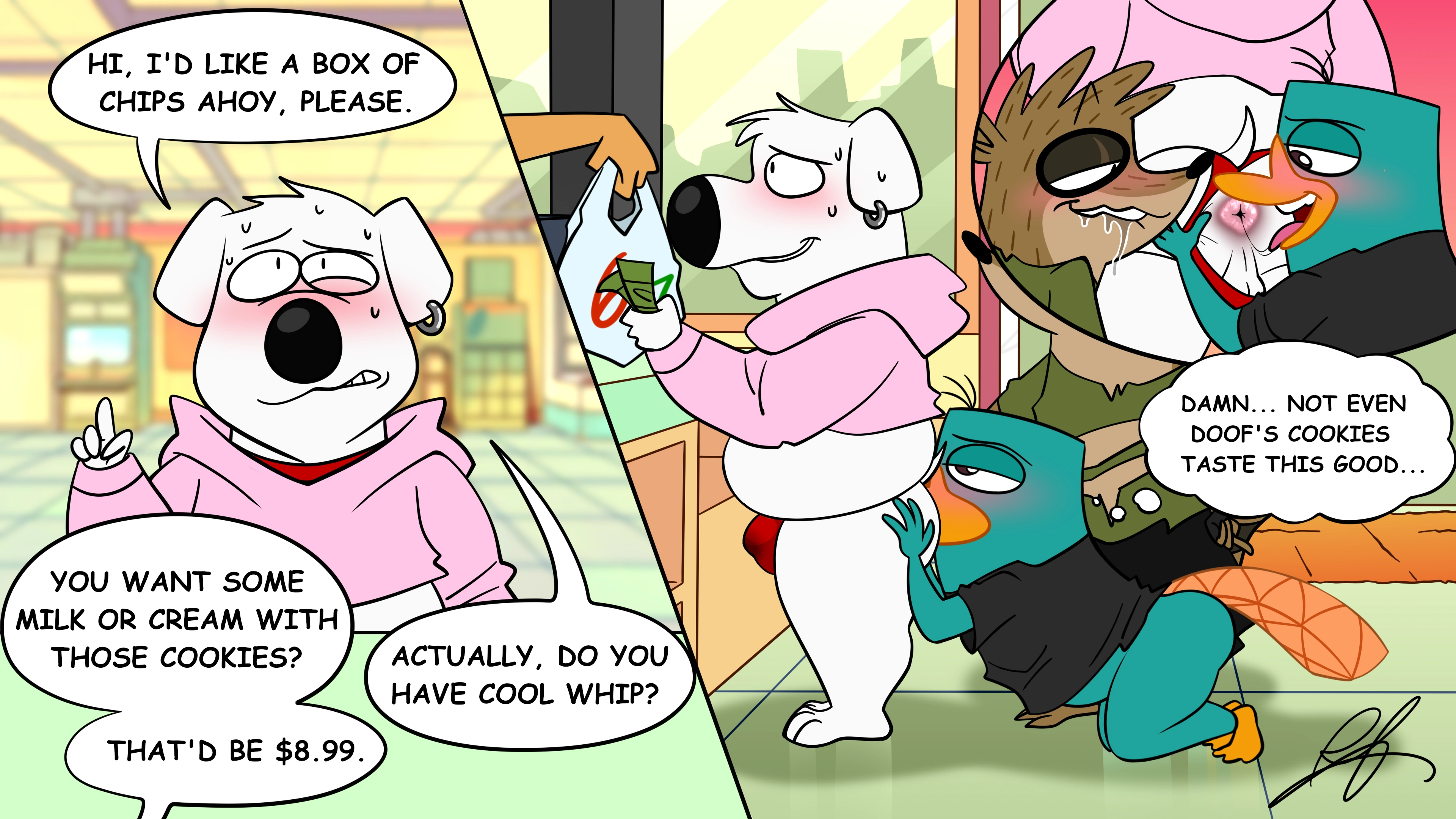 Brian Griffin, Perry The Platypus, Rigby (Regular Show) (Cartoon Network, Disney) Created By Platislut | Yiff Party