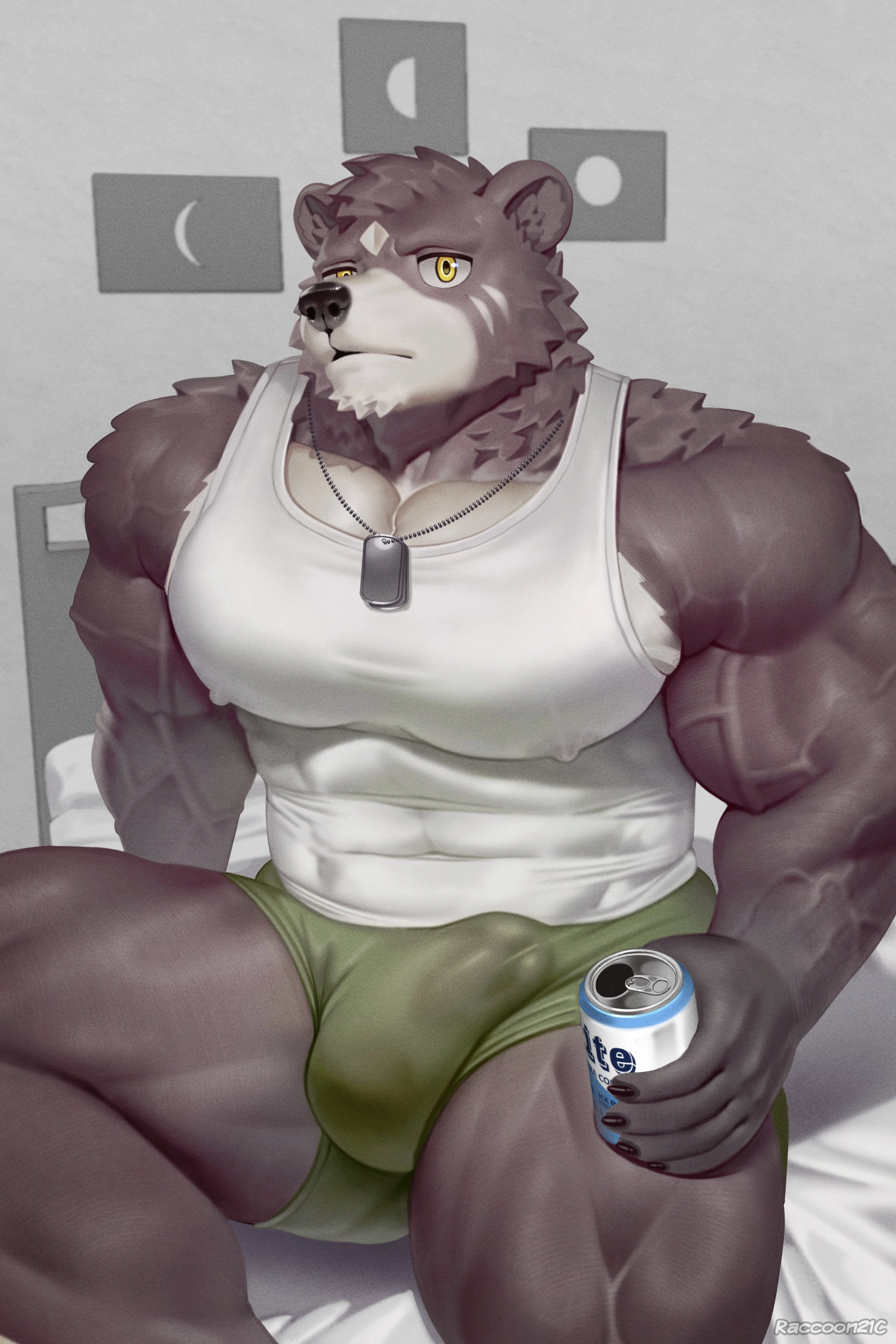 anthro · bear · black nipples · blush