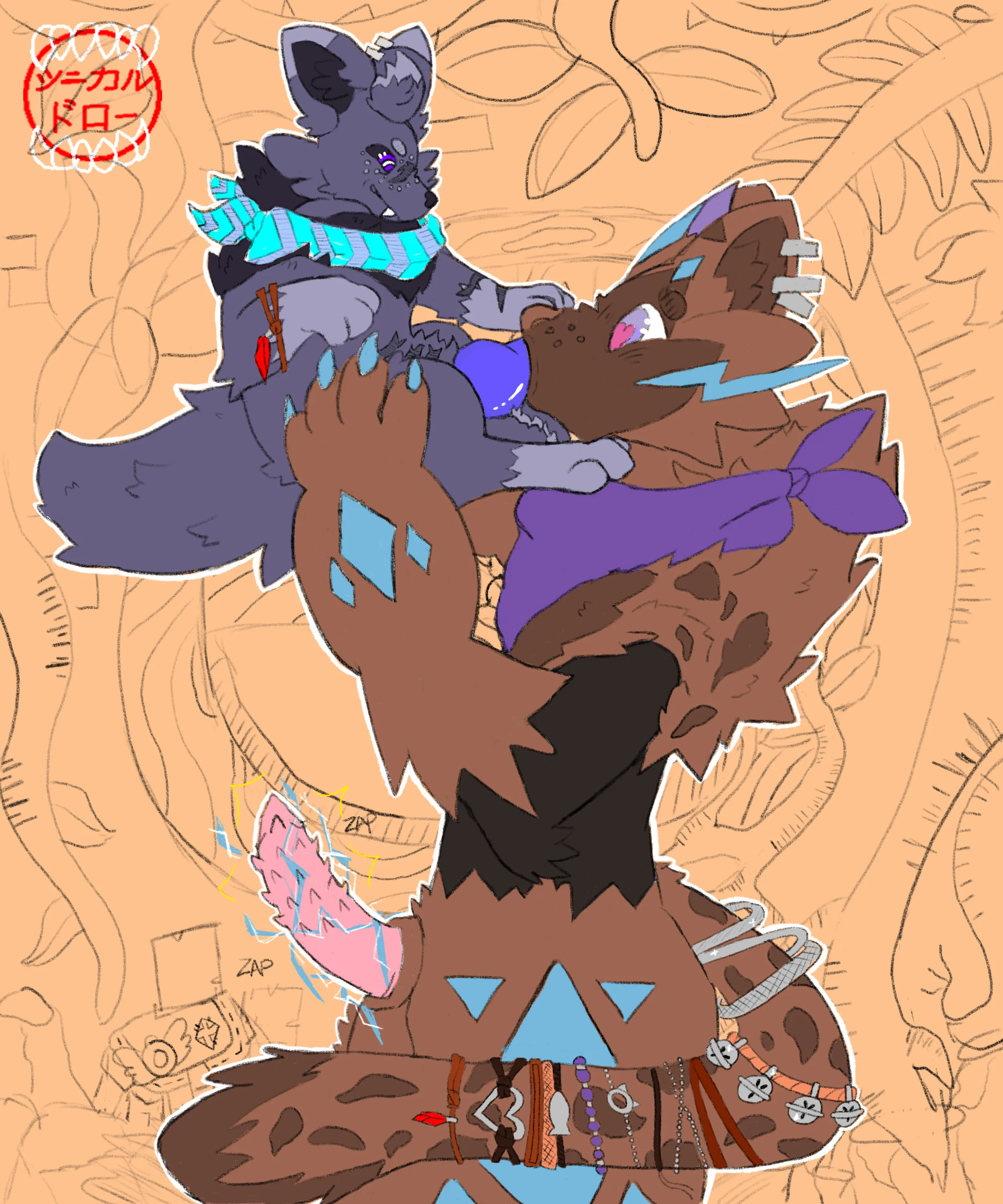 devon the zorua, fan character, purple the zeraora (nintendo, pokemon) created by cynical draws