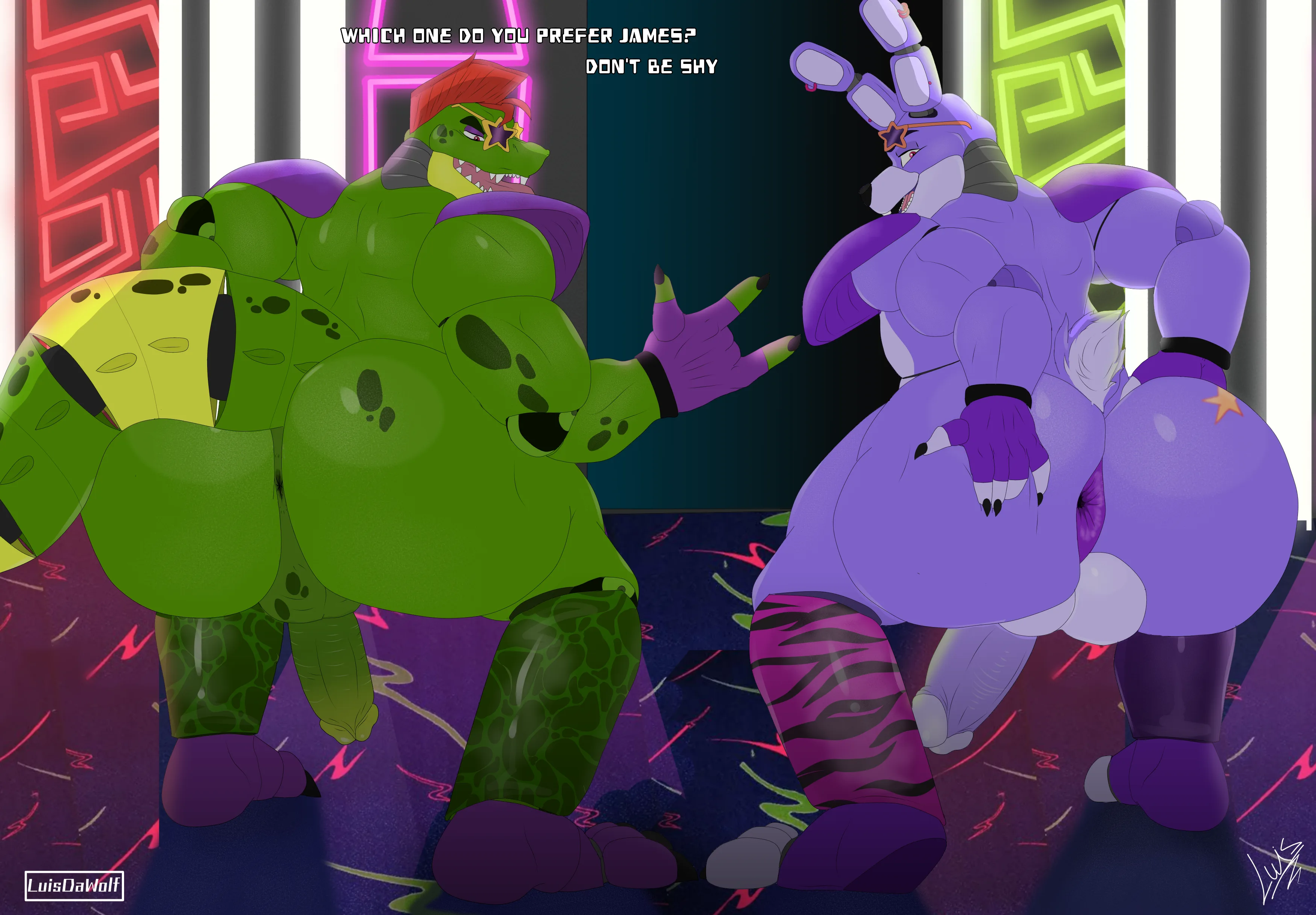 Fanmade Design Glamrock Bonnie, Glamrock Bonnie (Fnaf), Montgomery Gator (Five Nights At Freddy'S, Five Nights At Freddy'S: Security Breach) Created By Luisdawolf | Yiff Party
