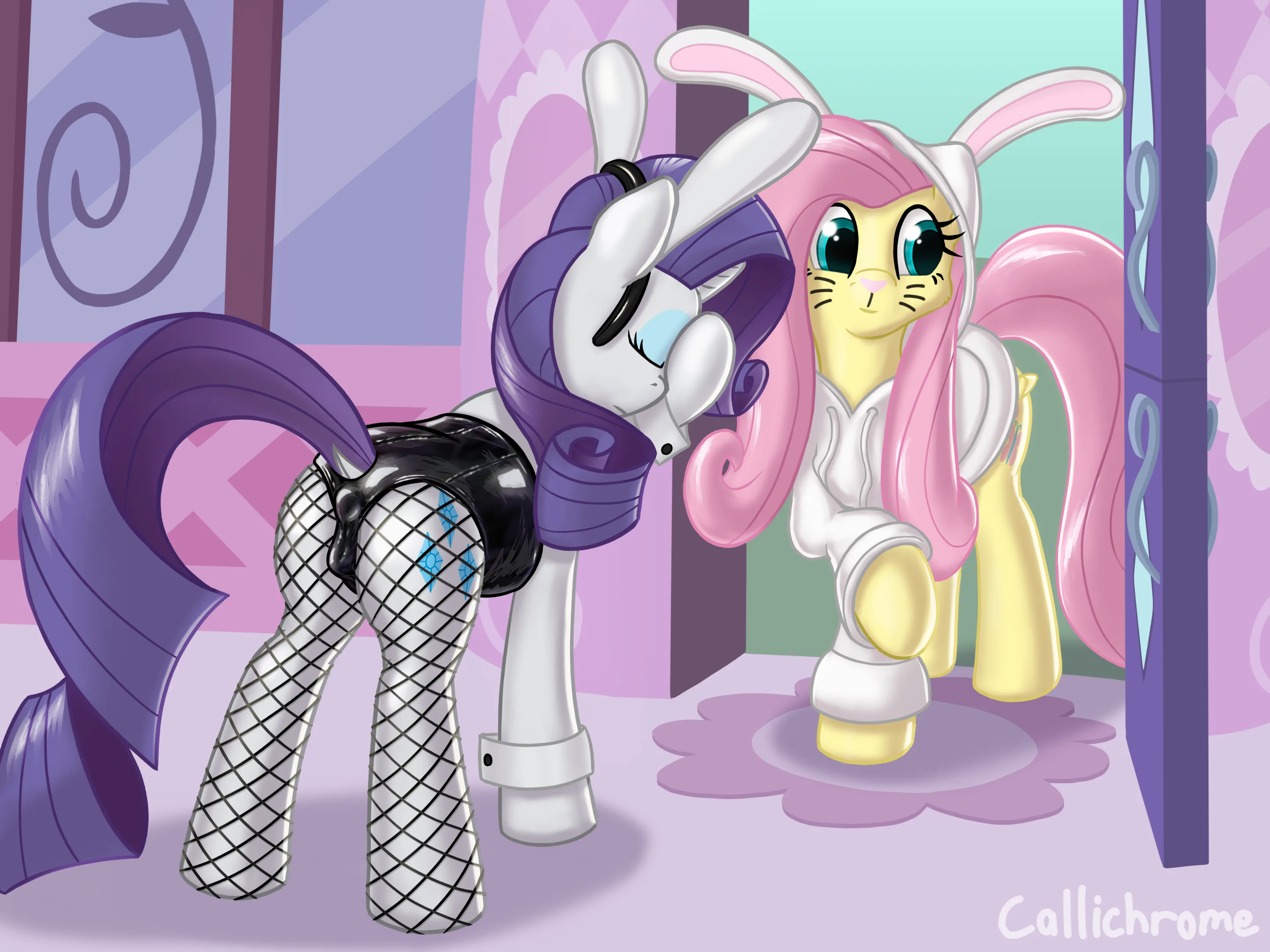 fluttershy (mlp), rarity (mlp) (friendship is magic, hasbro) created by callichrome