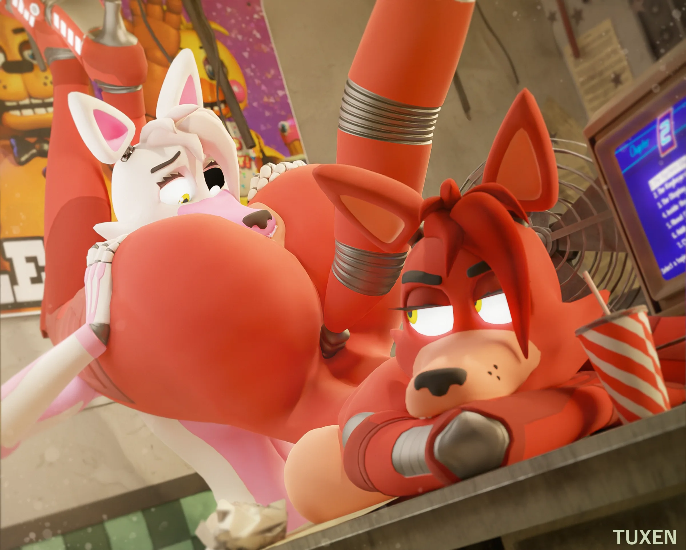 Foxy (Fnaf), Mangle (Fnaf) (Five Nights At Freddy'S, Five Nights At Freddy'S 2) Created By Tuxen | Yiff Party