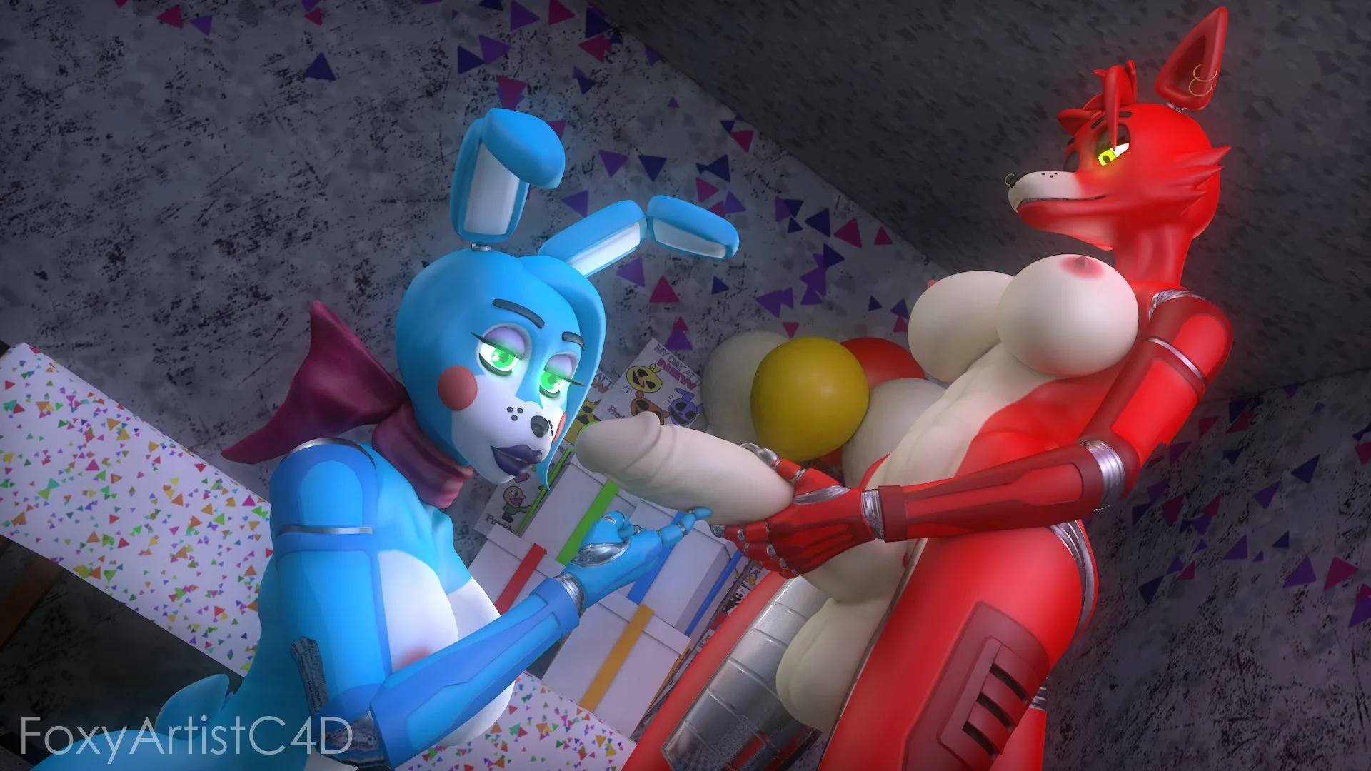 Foxy (Fnaf), Toy Bonnie (Fnaf) (Five Nights At Freddy'S, Five Nights At Freddy'S 2) Created By Foxyartistc4d | Yiff Party