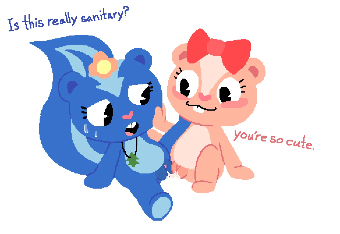 giggles (htf), petunia (htf) (happy tree friends) created by myra (artist)