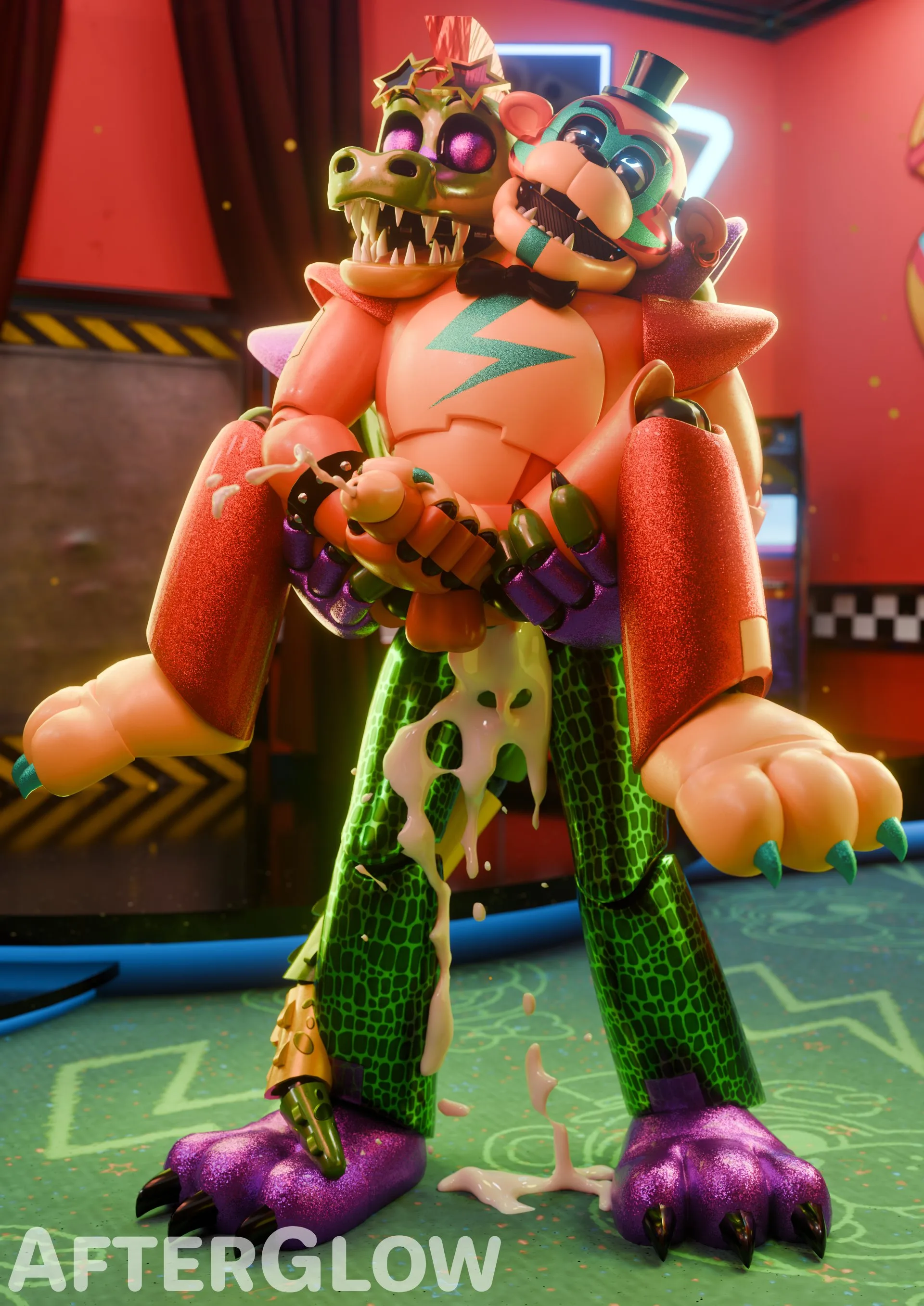 glamrock freddy, montgomery gator (five nights at freddy's, five nights at freddy's: security breach) created by afterglownsfw
