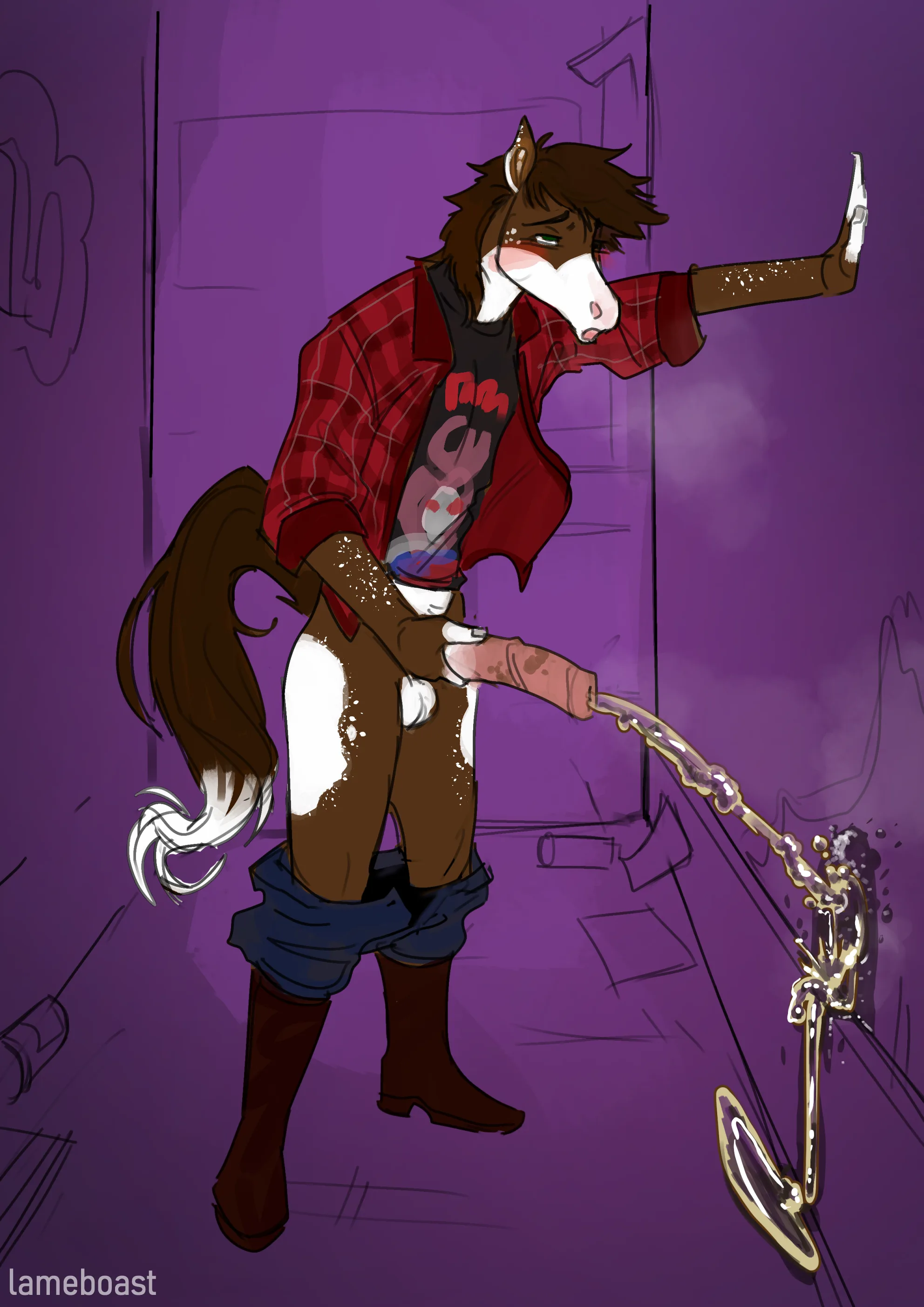 peeing on wall