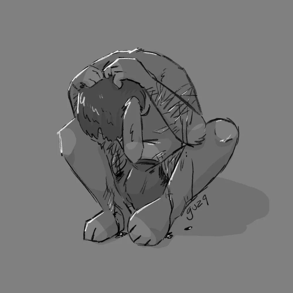 hunched over