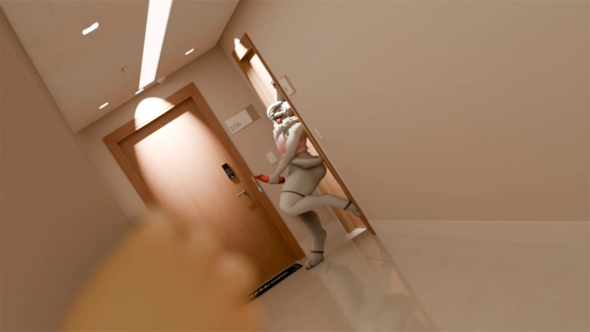 leaning on door