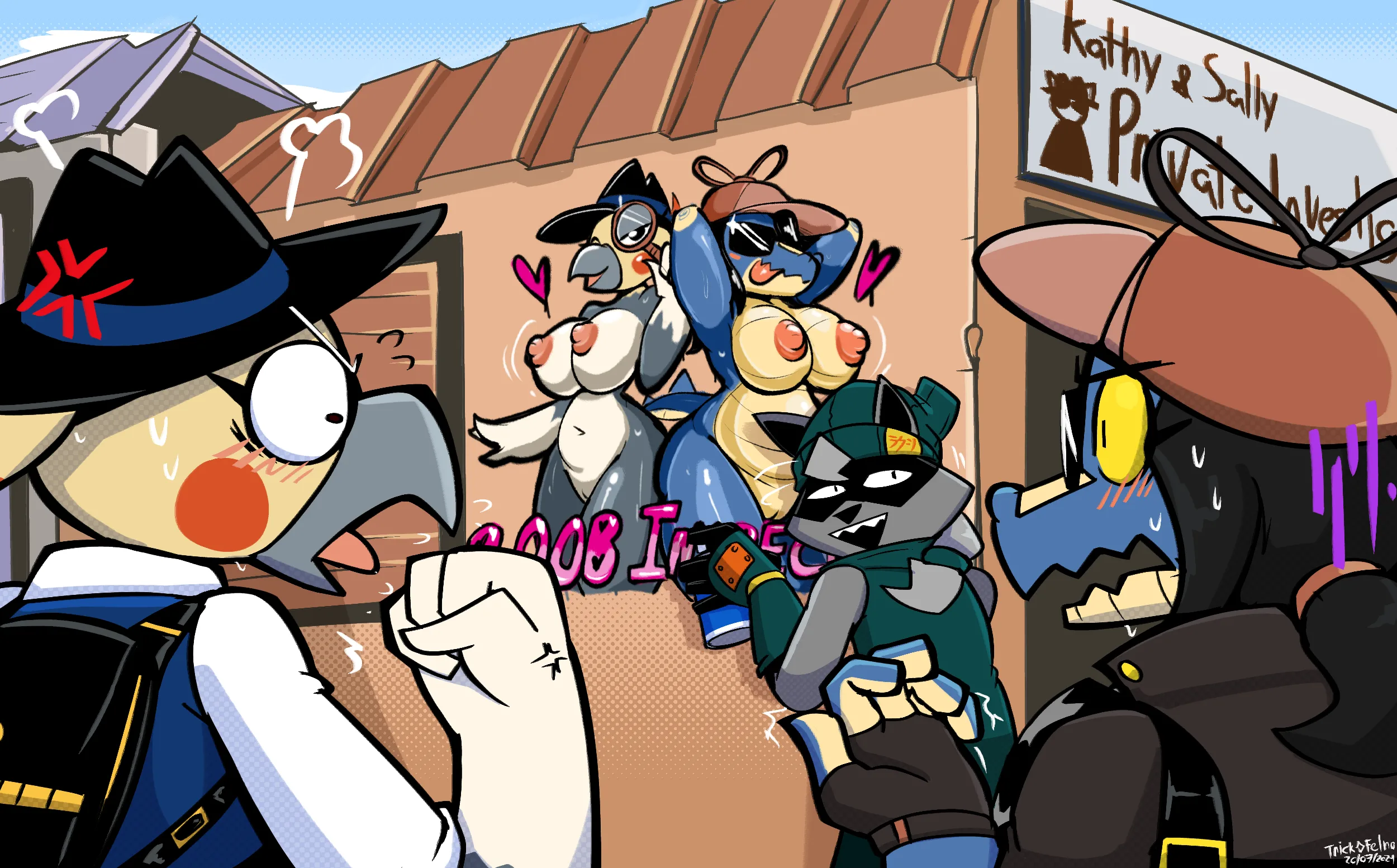 kathy (felino), sally (felino), trick (tricktrashing) created by felino