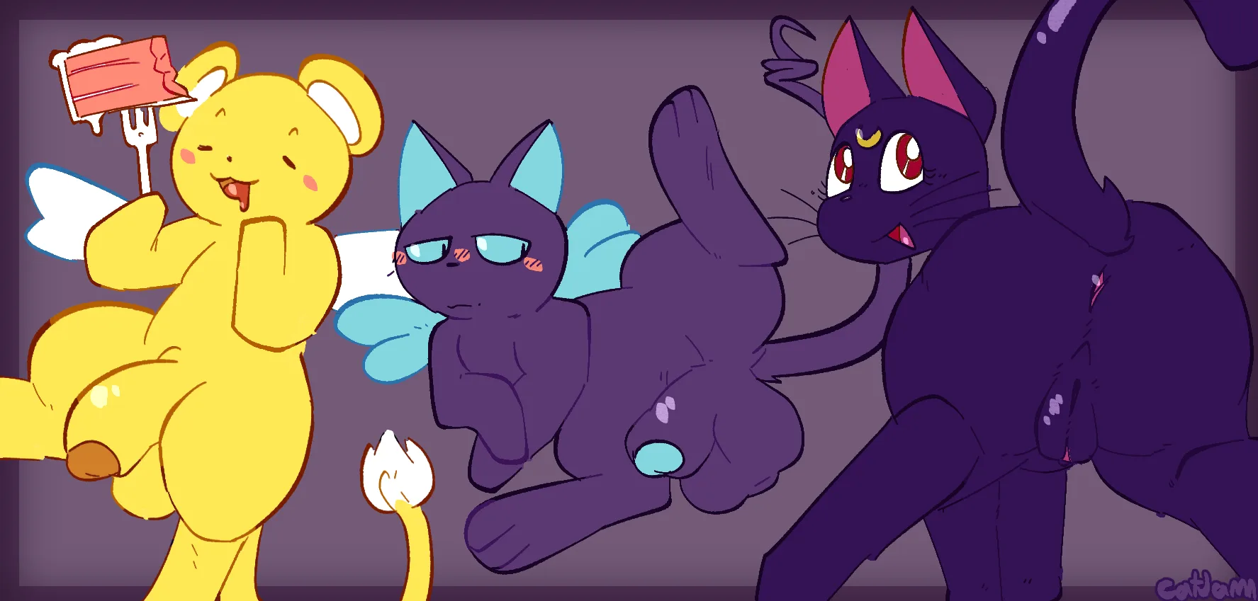 Kero (Cardcaptor Sakura), Luna (Sailor Moon), Spinel Sun (Cardcaptor Sakura, Sailor Moon (Series)) Created By Catjamn | Yiff Party