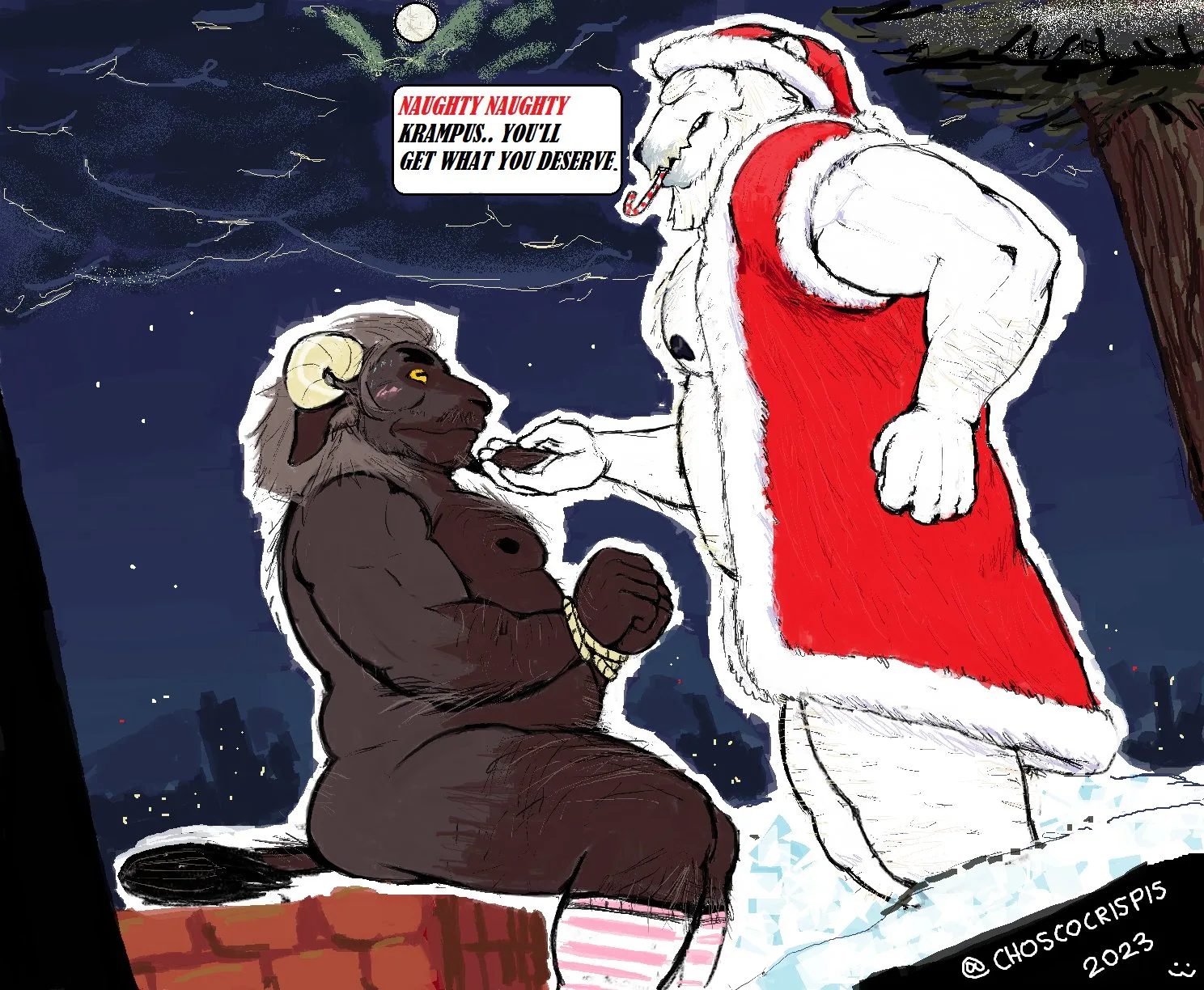 krampus, santa claus (christmas) created by choscocrispis