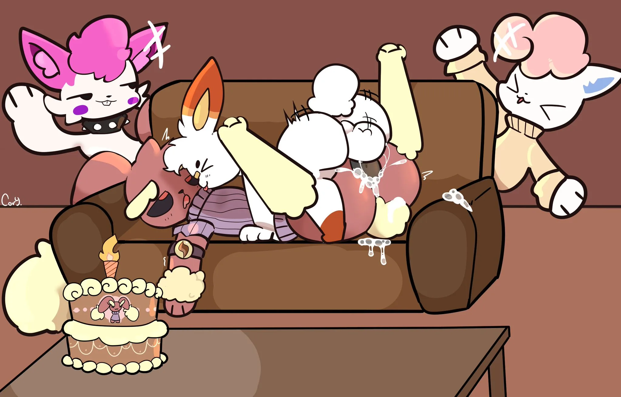 Lone (Kyubeans), Maestro (Thefluffmaestro), Pink (Tinks) (Nintendo, Pokemon) Created By Drawcat13 | Yiff Party