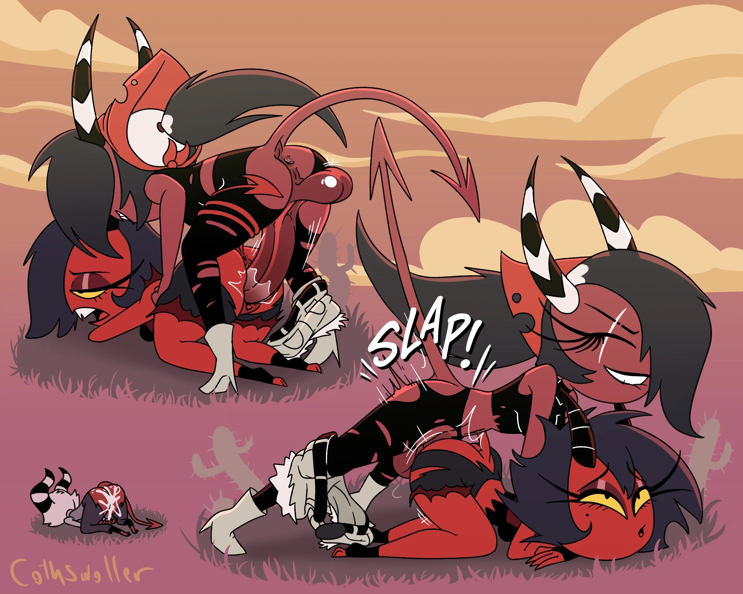 millie (helluva boss), moxxie (helluva boss), sallie may (helluva boss) (hellaverse, helluva boss) created by cothswoller
