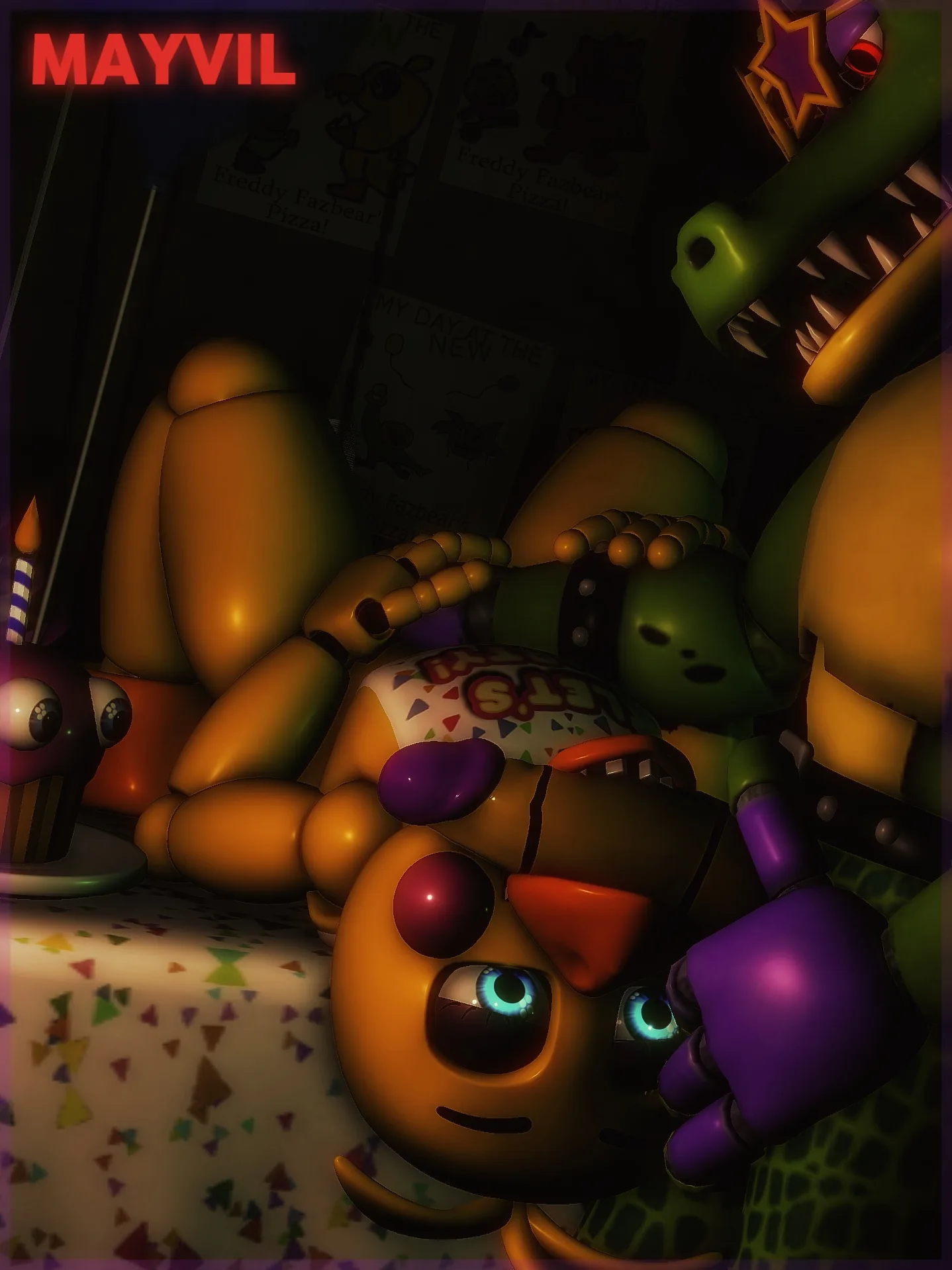 Montgomery Gator, Toy Chica (Fnaf) (Five Nights At Freddy'S, Five Nights At Freddy'S: Security Breach) Created By Mayvil | Yiff Party