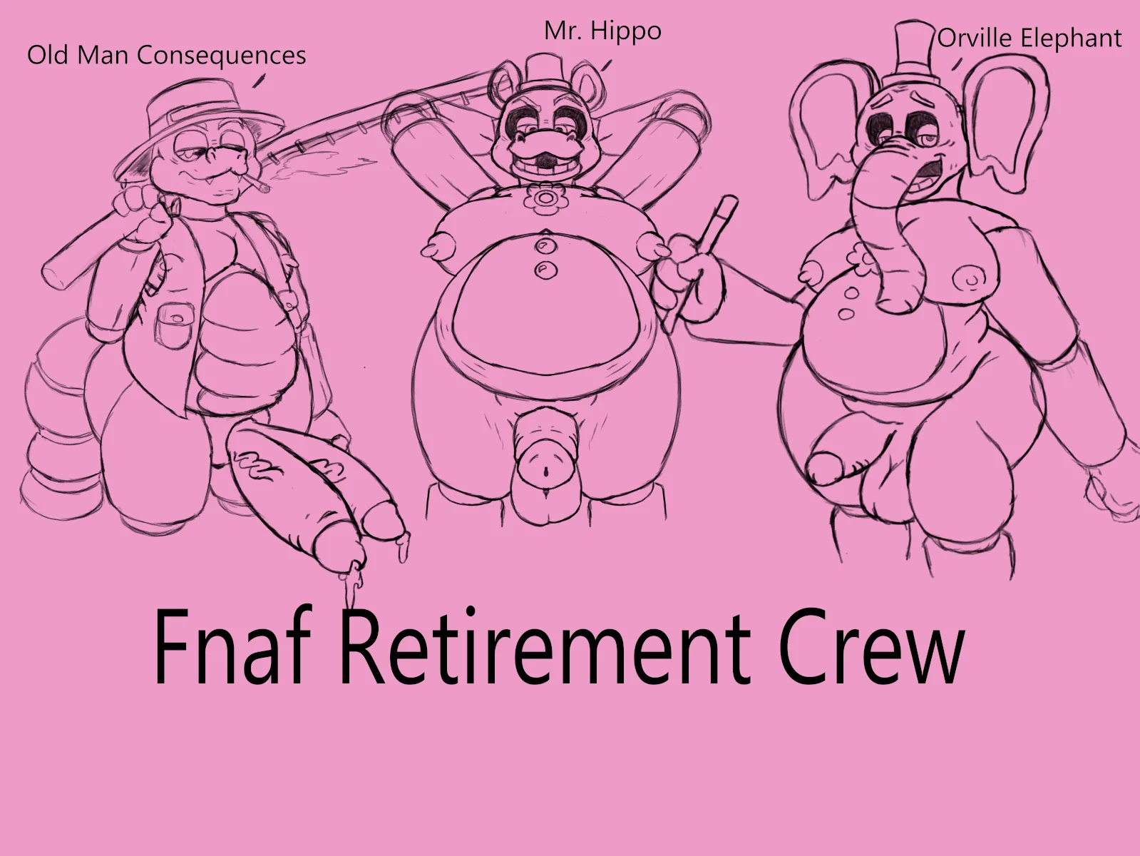 Mr. Hippo (Fnaf), Old Man Consequences (Fnaf), Orville Elephant (Fnaf) (Five Nights At Freddy'S, Freddy Fazbear'S Pizzeria Simulator) Created By Cloudshywolf | Yiff Party