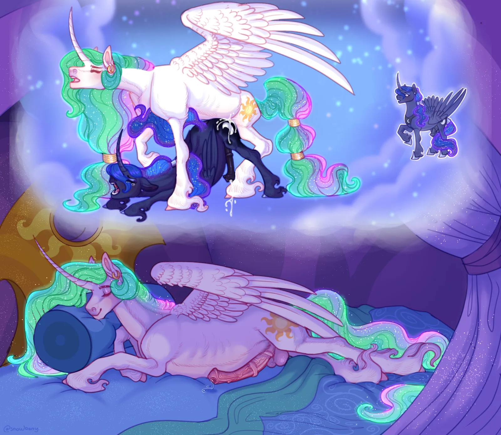 prince artemis, prince solaris, princess celestia (mlp) (friendship is magic, hasbro) created by snowberry