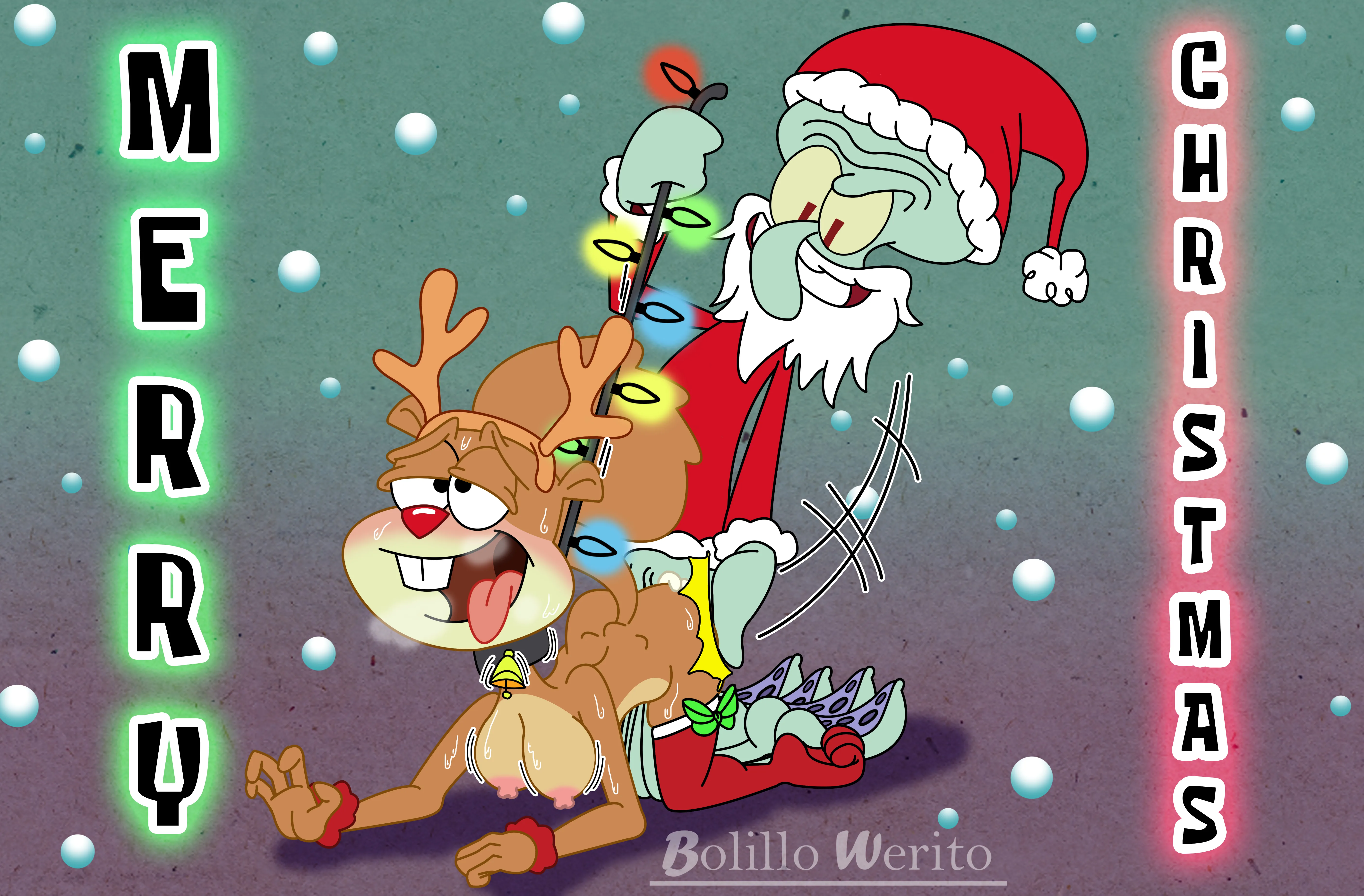 sandy cheeks, squidward tentacles (christmas, nickelodeon) created by bolillo werito